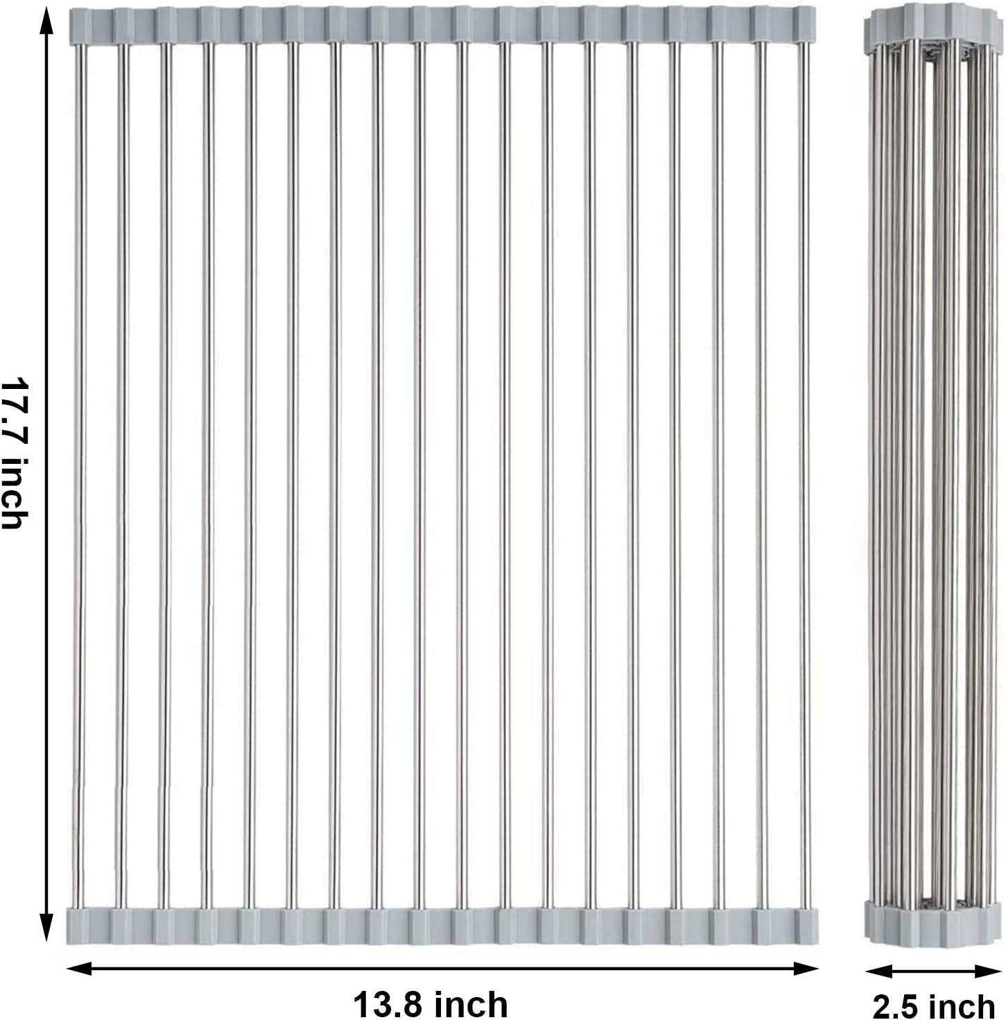 - Size : 17.7 x 13.8 inches, the size of the over sink dish drying rack is suitable for most kitchen sinks and countertop. And you can also fold or cut the collapsible sink drying rack according to your sink size for better use. Please kindly measure your sink size firstly before purchasing this roll up dish drying rack over sink. A great helper for home accessories and kitchen necessities. With this small kitchen gadget, your kitchen and home will be much tidier and comfortable
