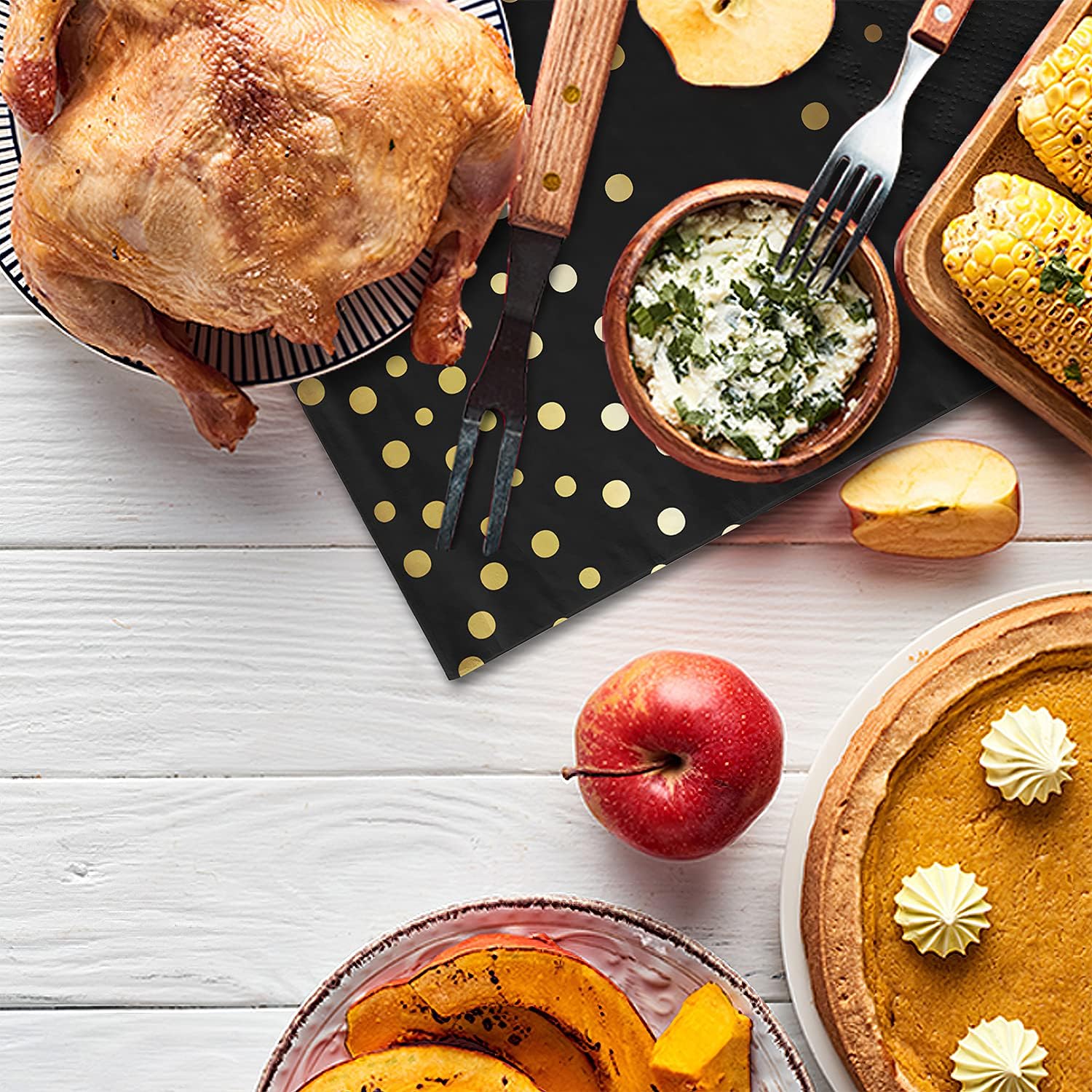- CLASSIC COLORS COMBINATION & ELEGANT DESIGN: the napkins are composed by classic colors including Black and gold. We choose gold stamping dots to make the design more attractive and exquisite. You can easily create an elegant party atmosphere.