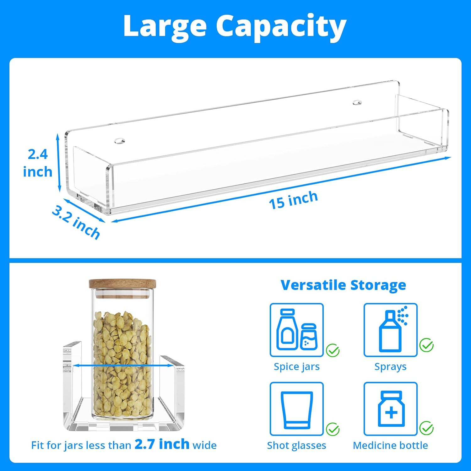 NIUBEE Wall Mounted Spice Rack Organizer,Clear Acrylic Spice Shelf Storage Holder,Hanging Seasoning Rack Organizer for Wall Kitchen 4 Pack