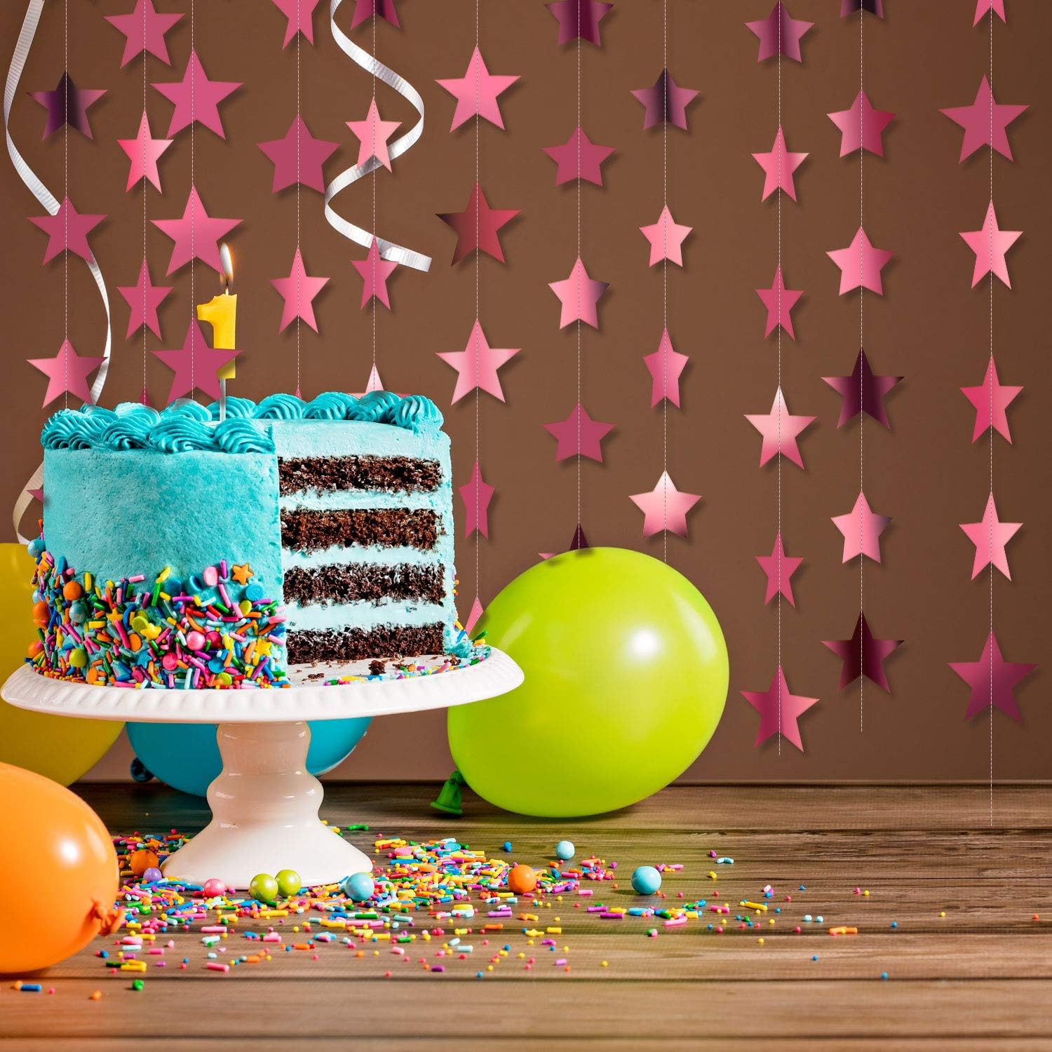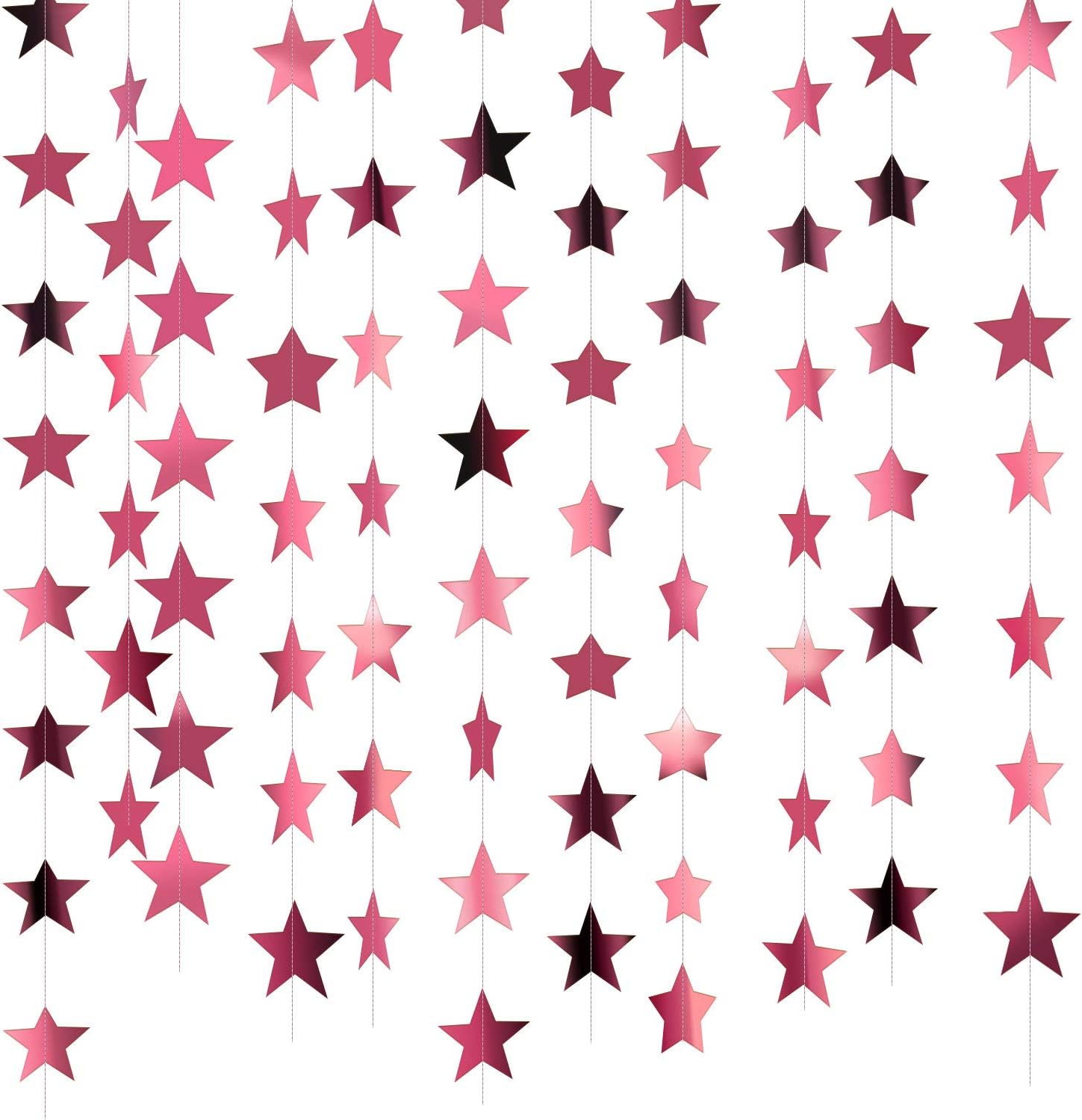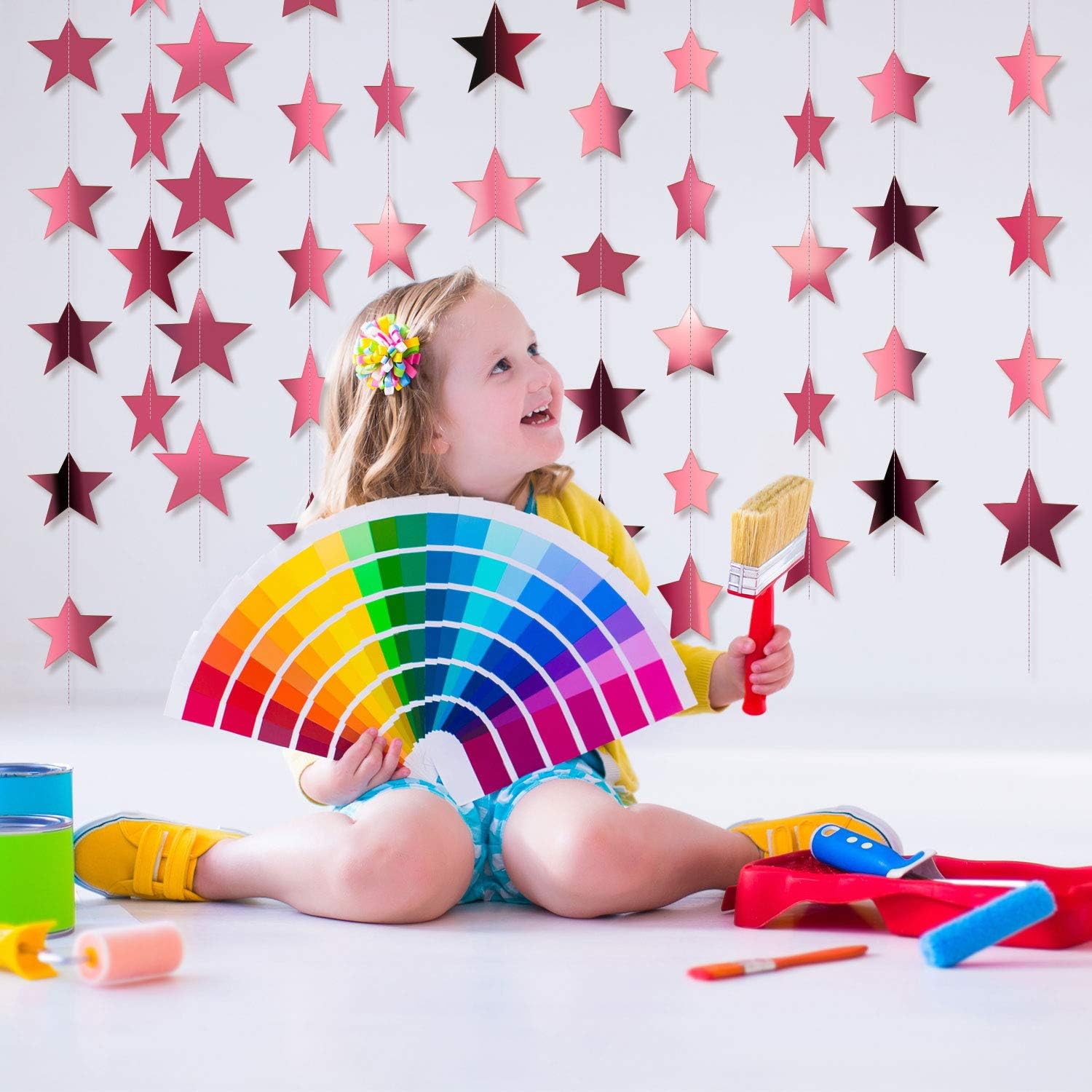 Patelai Glitter Star Garland Banner Decor 130 Feet Star Hanging Bunting Banner Twinkle Backdrop for Homecoming Classroom Wedding Birthday Halloween Christmas Party Supplies(Rose Pink)