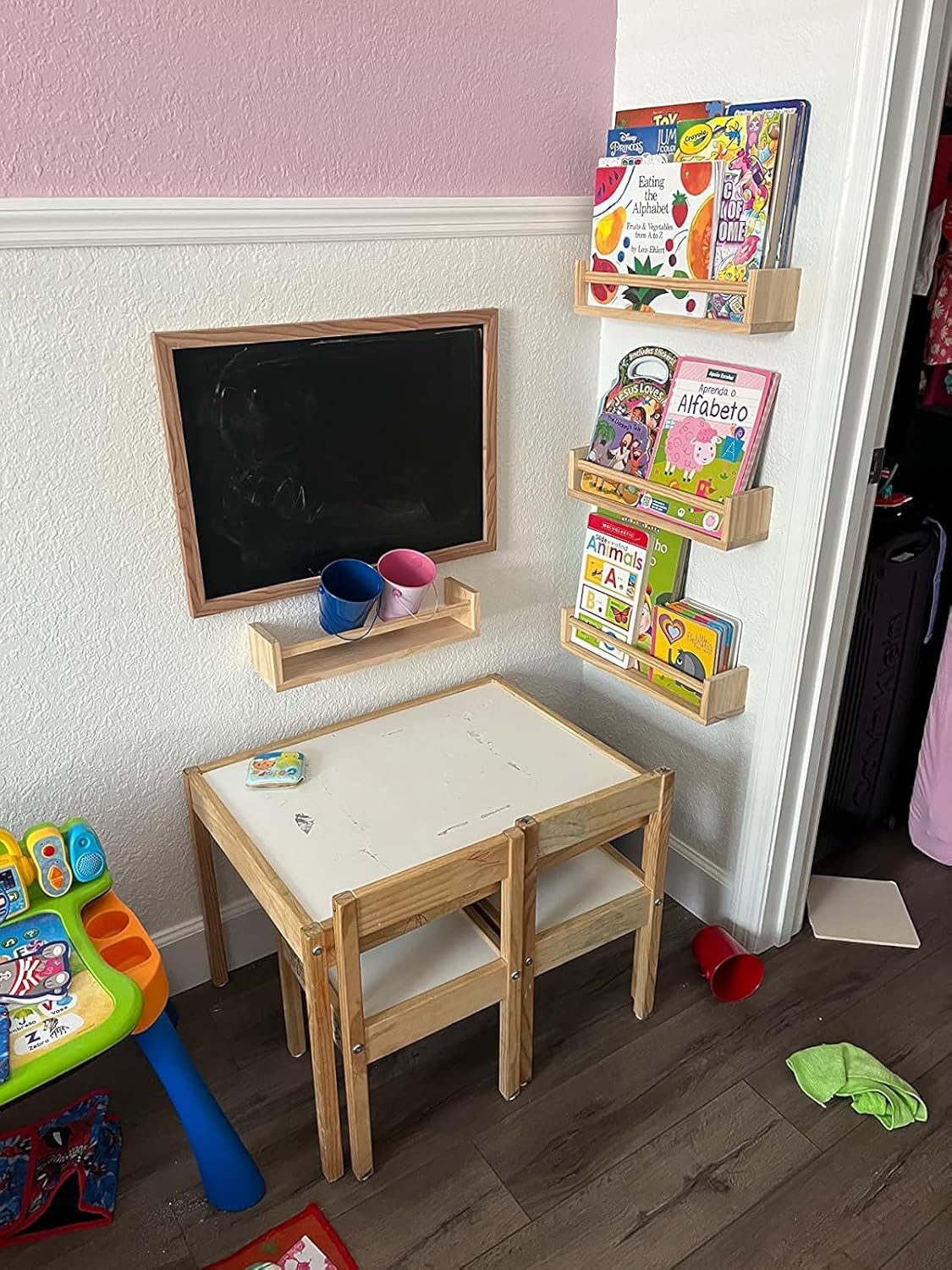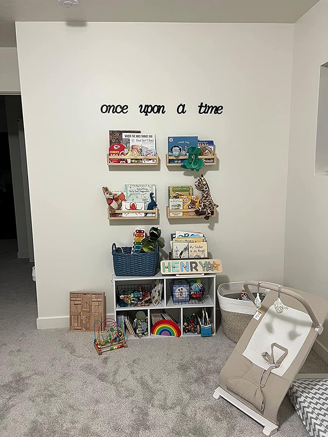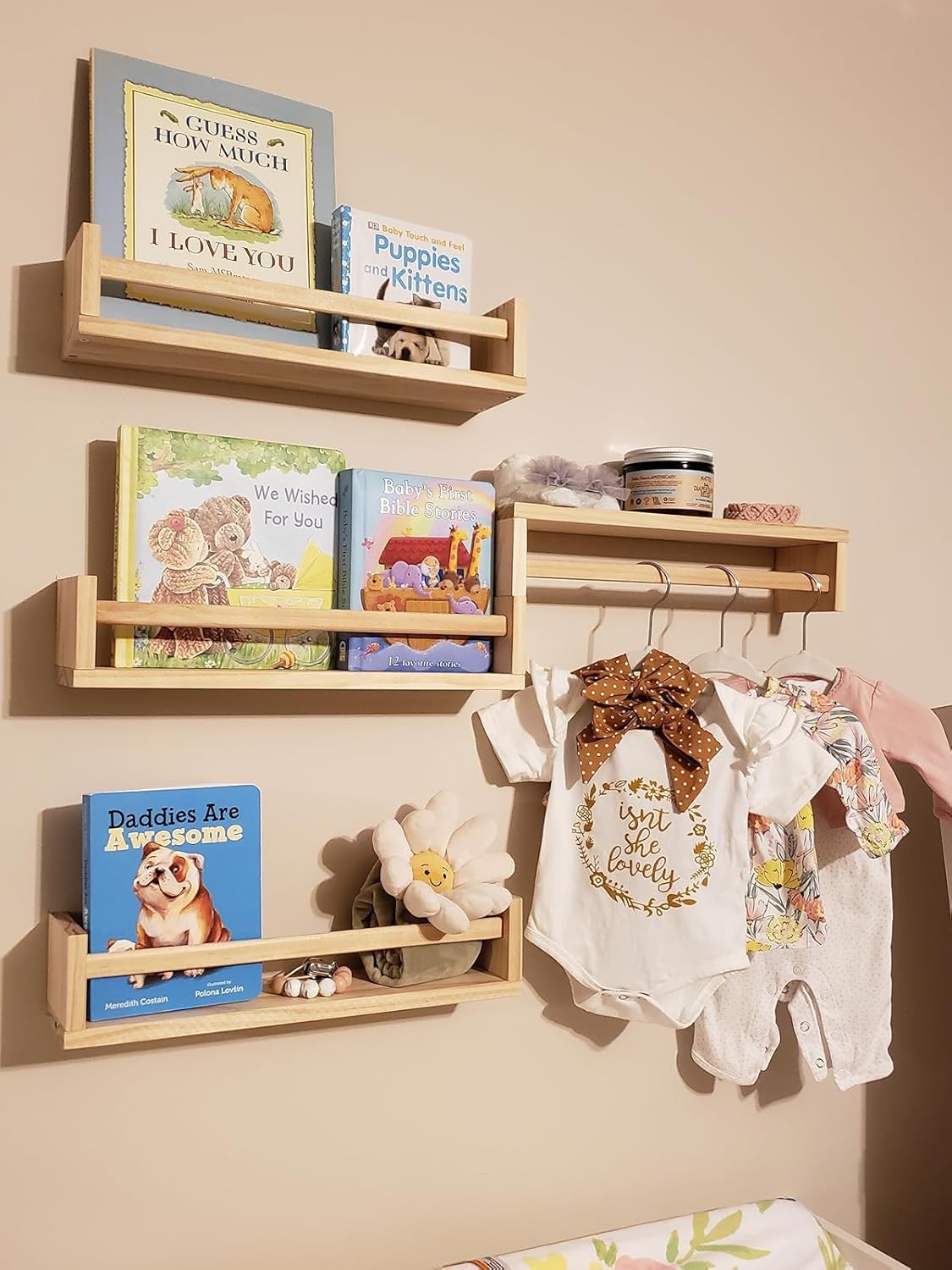 - β STURDY CONSTRUCTION β Organize your childrens books, toys, small picture frames, and other decorative pieces with this Nursery Room Wall Shelf Set. It is made with a sturdy, solid wood and has an understated yet functional design that is great for bedrooms, kitchens, and bathrooms