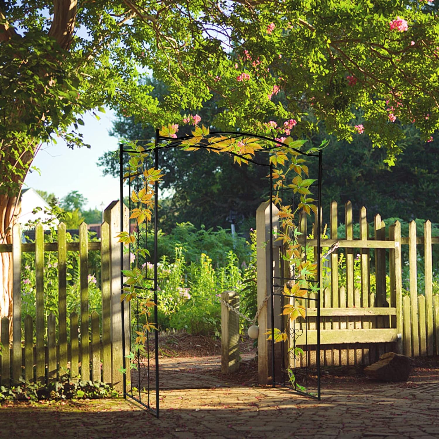 - Elegant Arch: Whether standing alone or covered with climbing vines and flowers, these outdoor metal arch add a striking focal point to your yard. Adding grace and prominence to any outdoor venue with the Arbor features squared lattice side panels