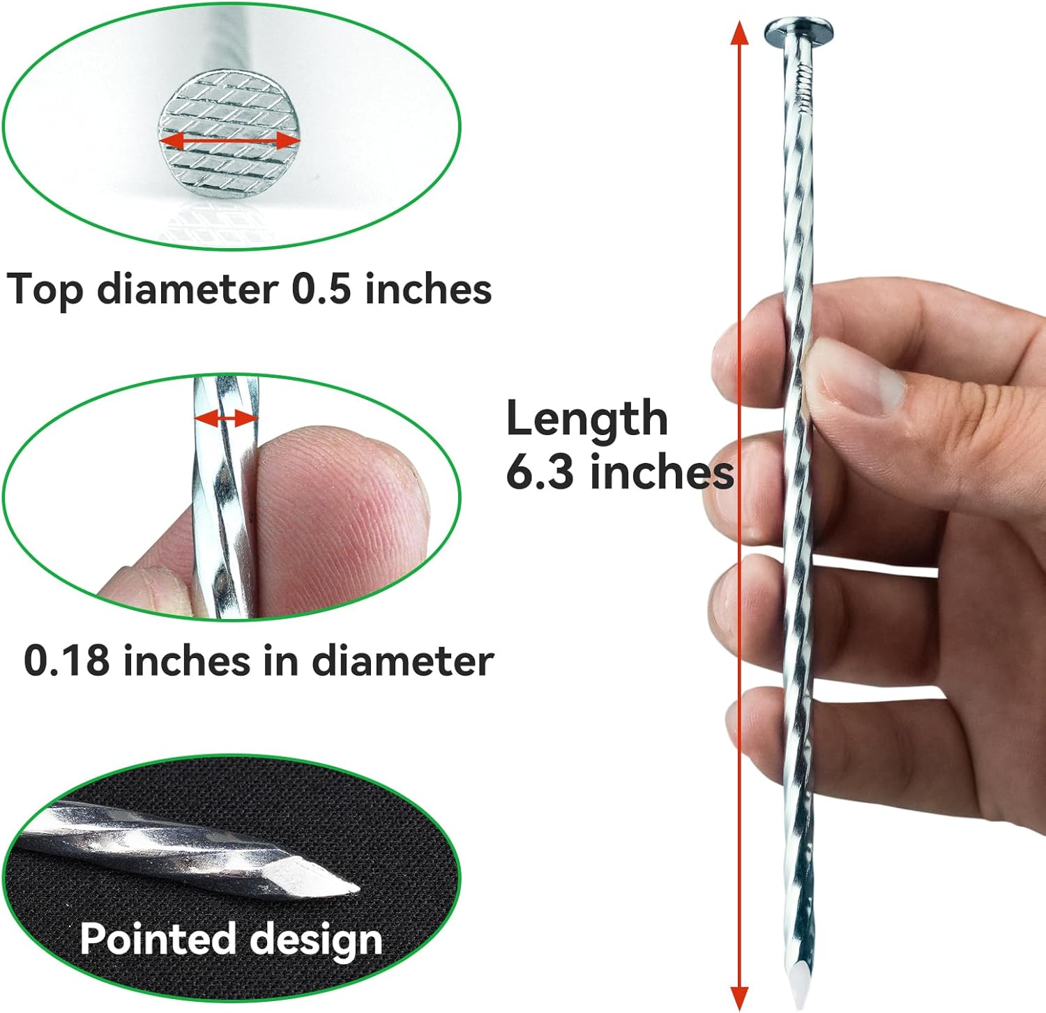 6.3-Inch Galvanized Heavy-Duty Landscape Stakes, (150-PACK) Spiral Metal Turf Spikes for Artificial Grass, Paver Edging, Weed Barrier, Securing Fences and More