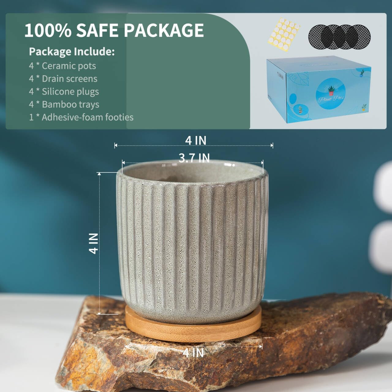 - Small Size - 4" diameter x 4" height is a perfect size for little plants' thrive. Great for indoor plants, snake plants, succulent plants, flowers or a few artificial plants. (NOTE: Plants NOT Included, this product may be in 0.05 inches out.)