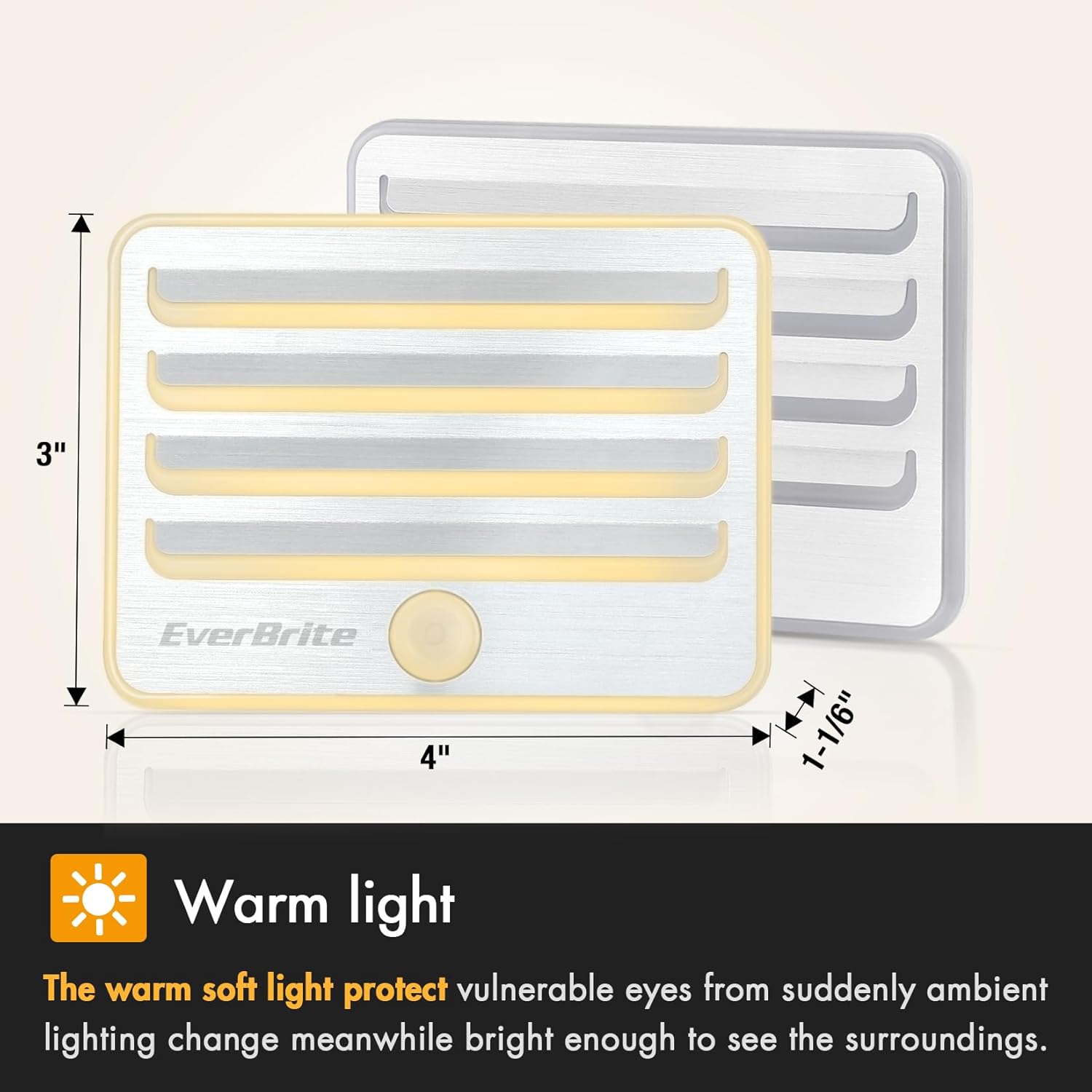 EverBrite Motion Sensor Night Lights, LED Soft Warm Light, Battery Powered Auto Stick-On Night Light for Bedroom, Bathroom, Stair, Closet, 9 AA Batteries Included(3 Pack)