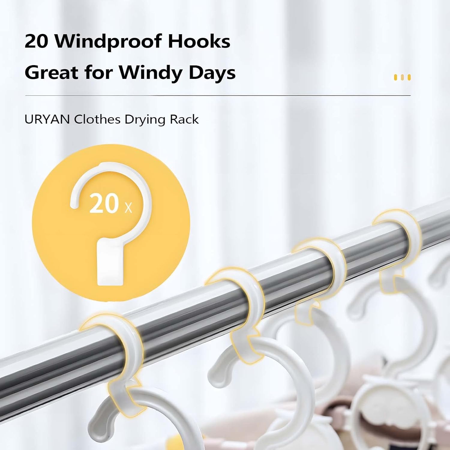 URYAN 63 Inches Clothes Drying Rack, Heavy Duty Stainless Steel Laundry Drying Rack Folding Indoor Outdoor, Portable Drying Rack Clothing, Free-Standing Laundry Stand with 20 Windproof Hooks