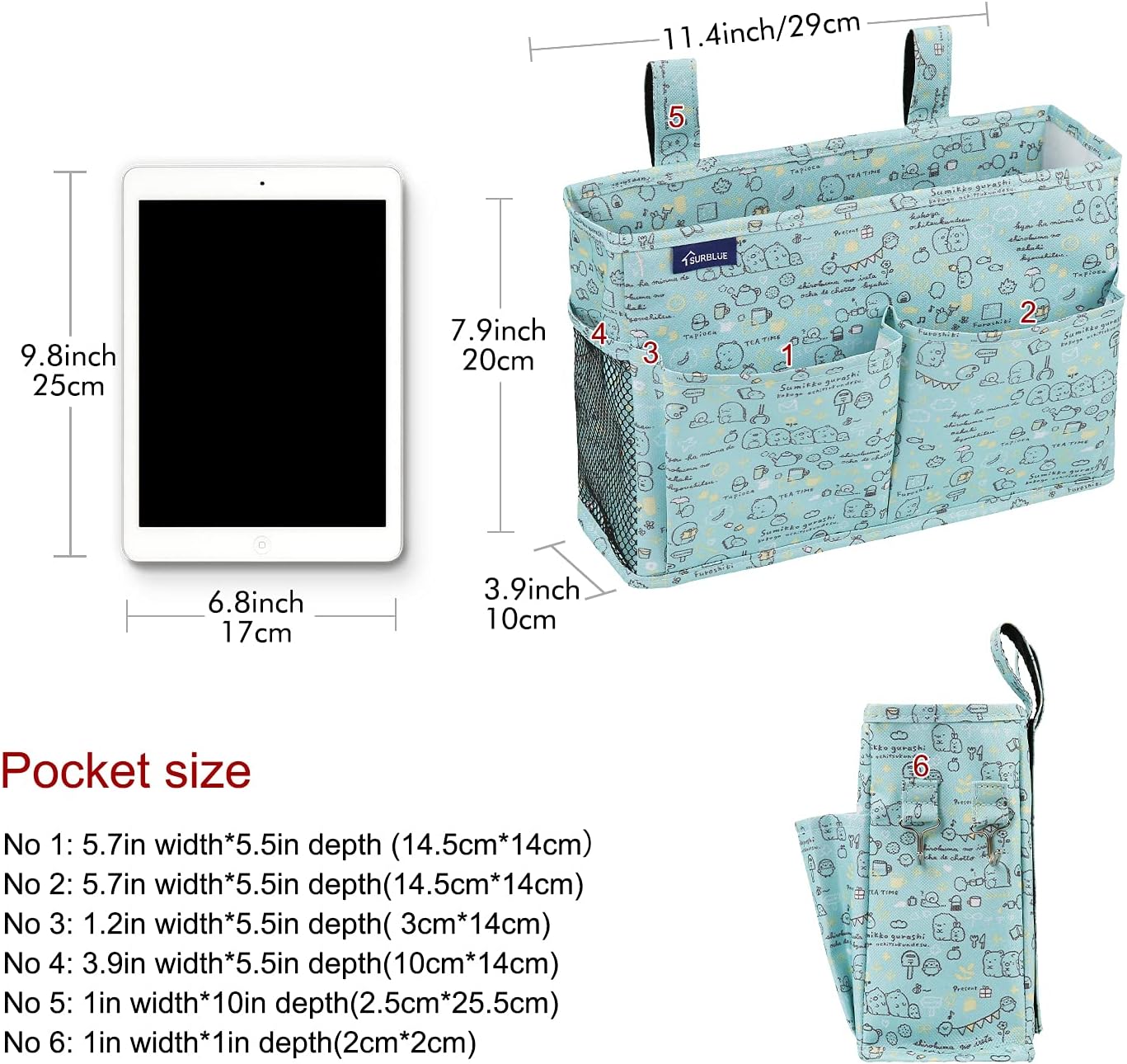Surblue Bedside Caddy Hanging Bed Organizer Storage Bag Pocket for Bunk and Hospital Beds, College Dorm Rooms Baby Bed Rails,Camp Chiars,Wheelchair Side Bag,4 Pockets and 2 Hooks (Cartoon)