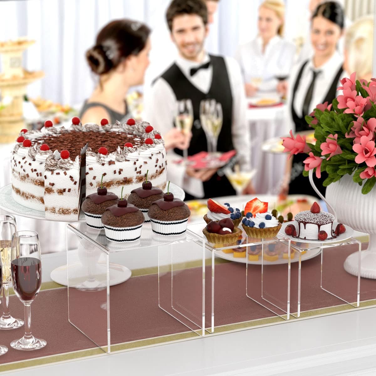 - DYNAMIC FLOATING EFFECT- Each display riser stand is made of super clear acrylic plexiglass, which is almost invisible and you can enjoy the visual effect of items floating in the air. The crystal clear acrylic display racks work nicely for home party, wedding and birthday celebration, which can decorate your treats table and make the table more appealing for the events by showing cakes, desserts, candies, snacks and plants etc.