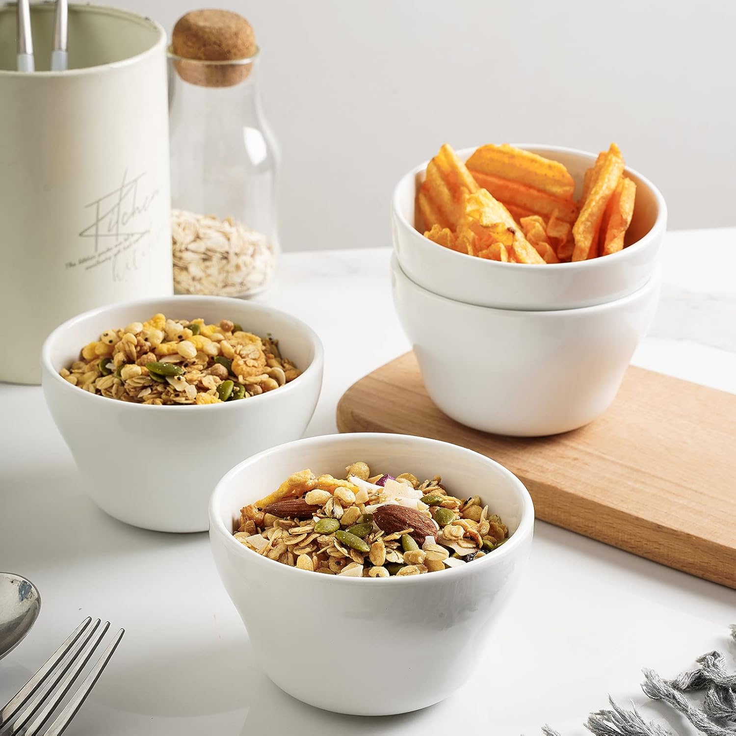 Selamica Ceramic Small Bowls Dessert Bowls 8oz Bouillon Cups for Dessert Soup Dipping Sauce Coffee Cupping Microwave and Dishwasher Safe- Set of 6(White)