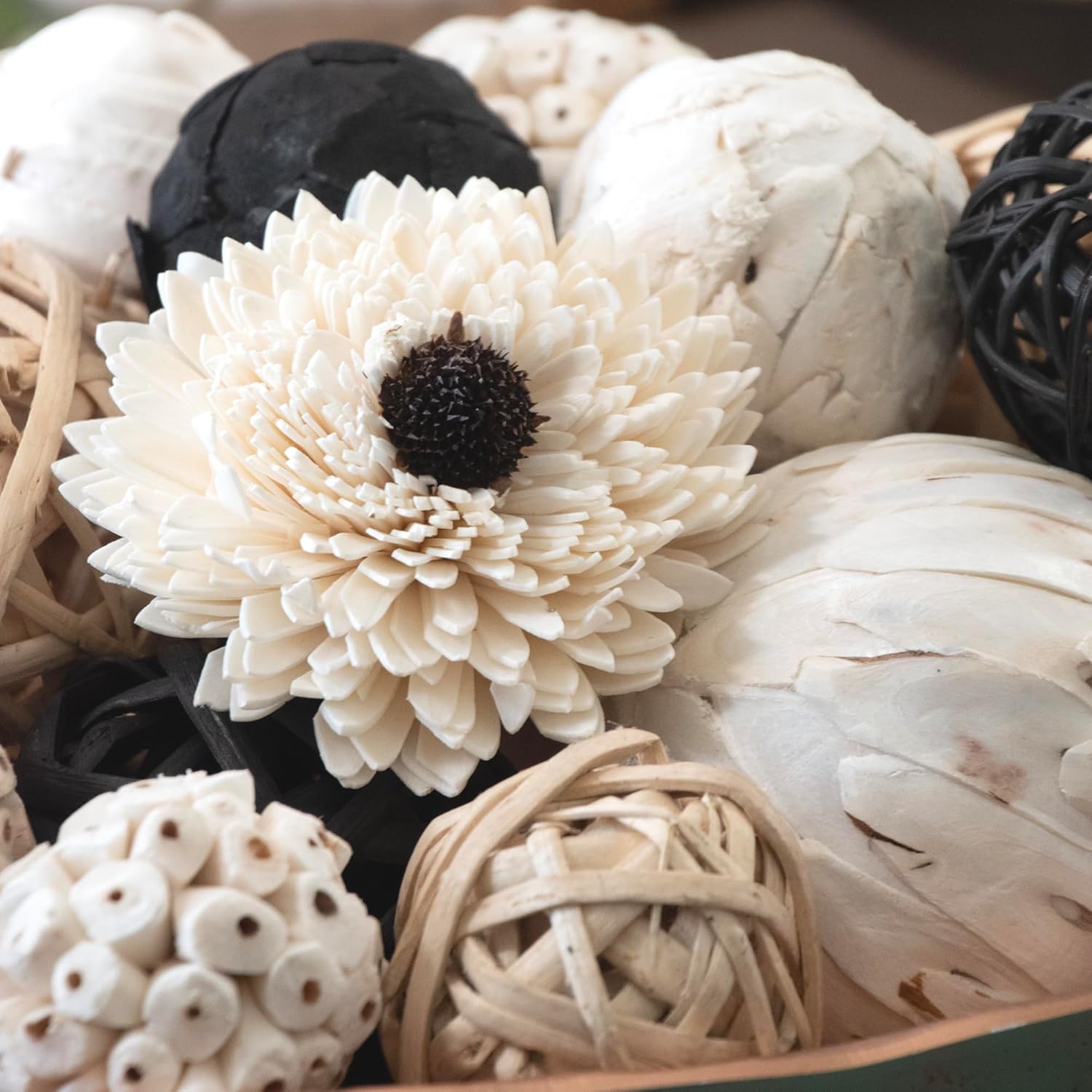 - Black & White Balls of Various Sizes with Artifical Sola Flower