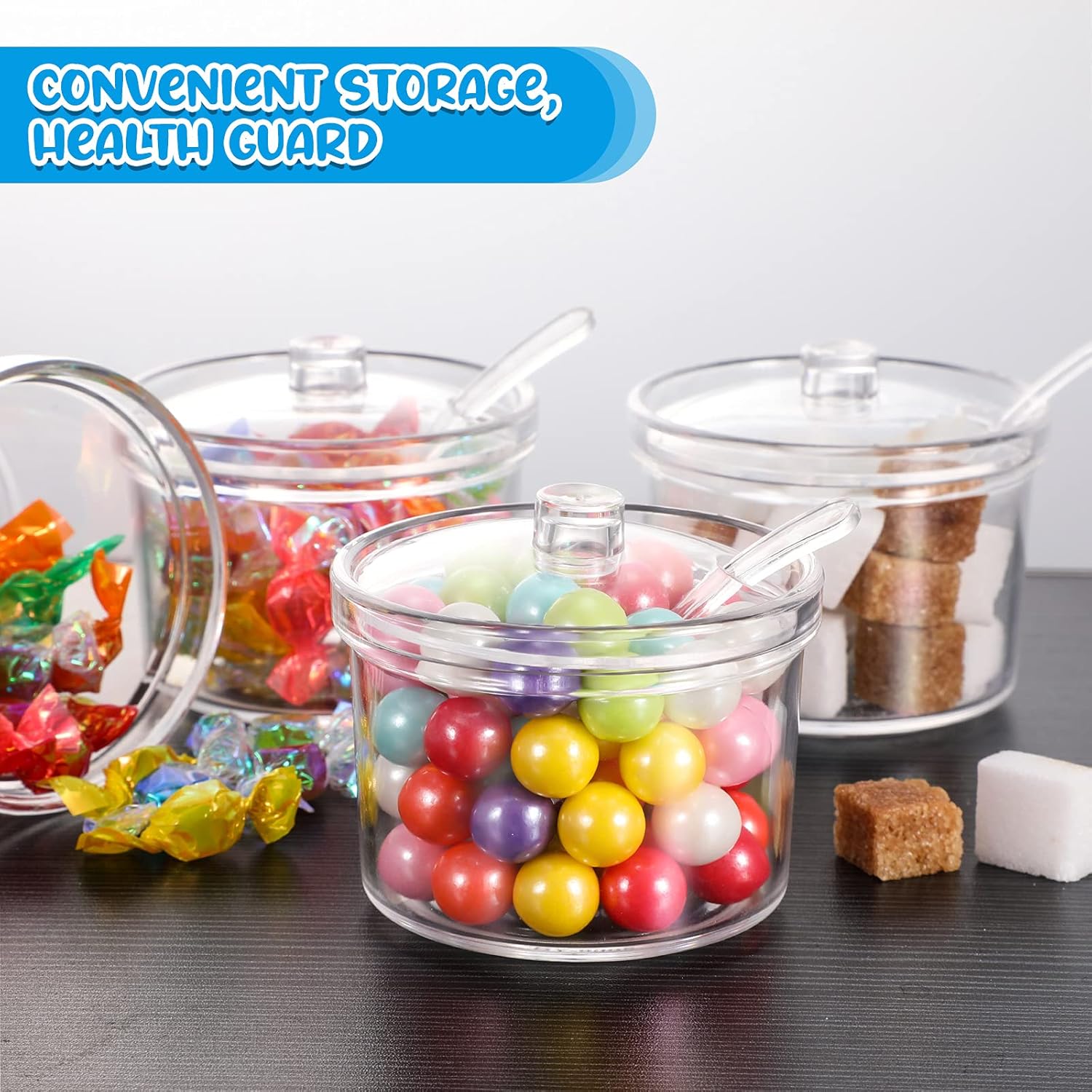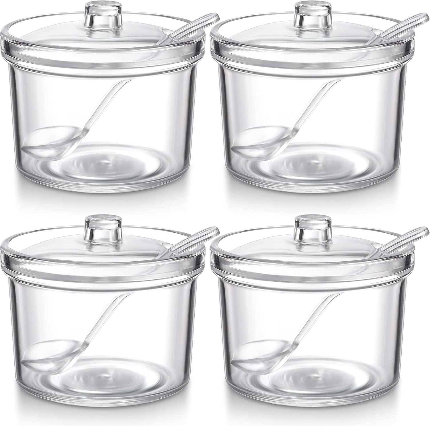 - Package included: you will get 4 pieces of clear acrylic sugar bowls with lid, each one is about 8.7 x 8.7 x 7.5 cm/ 3.43 x 3.43 x 2.95 inches, the capacity is about 210 ml/ 7.1 oz, it is light and easy to carry