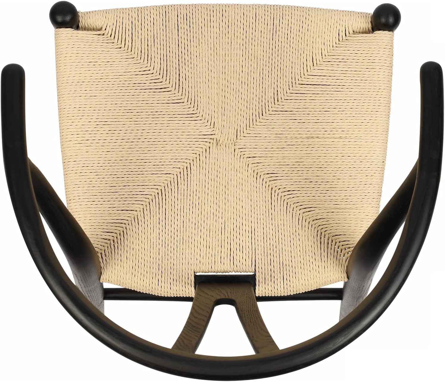 Tomile Solid Wood Wishbone Chair Y Chair Mid-Century Armrest Dining Chair, Hemp Seat (Ash-Black Frame + Natural Cord)