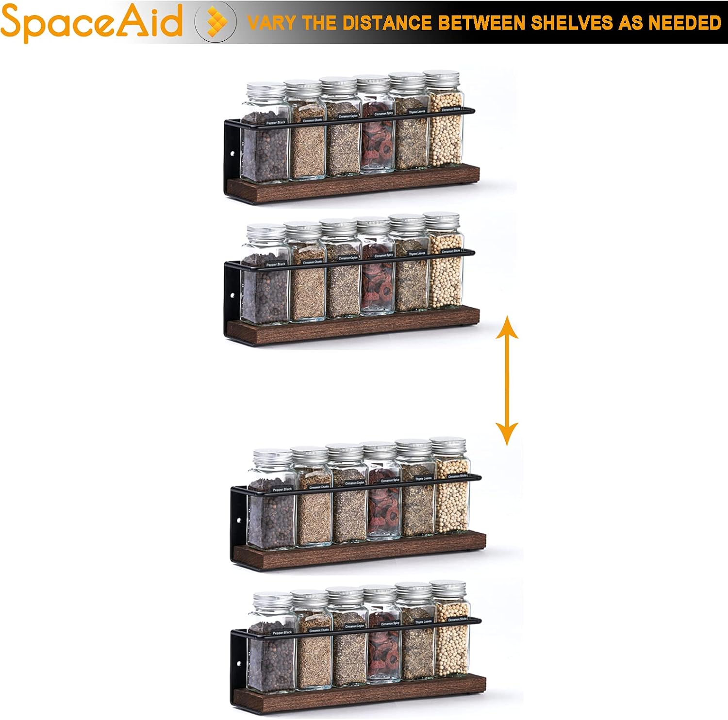 SpaceAid Spice Rack Organizer for Cabinet Door or Wall Mount (4 Pack) with 415 Spice Labels - Wood Hanging Seasoning Shelf for Cupboard Pantry or over the Stove