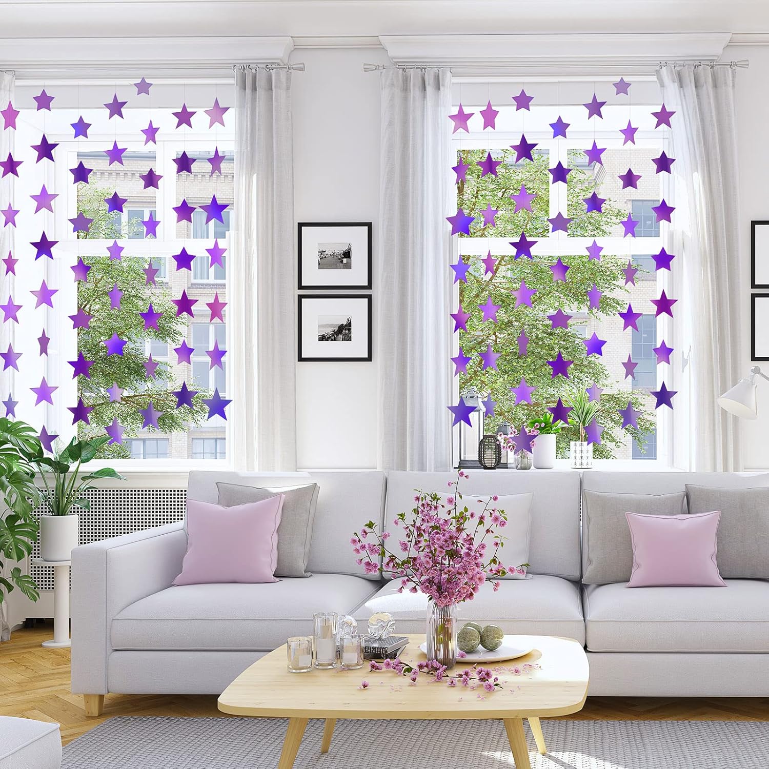 Patelai Glitter Star Garland Banner Decor 130 Feet Star Hanging Bunting Banner Twinkle Backdrop for Homecoming Classroom Wedding Birthday Halloween Christmas Party Supplies(Holographic Purple)