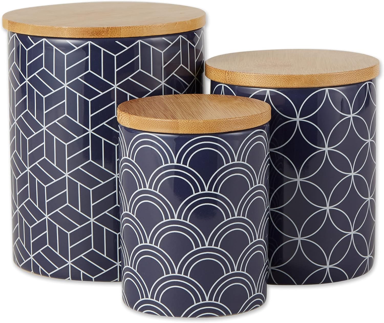 DII Kitchen Ceramics Collection, Canister Set, Mixed Print, Nautical Blue, 3 Piece