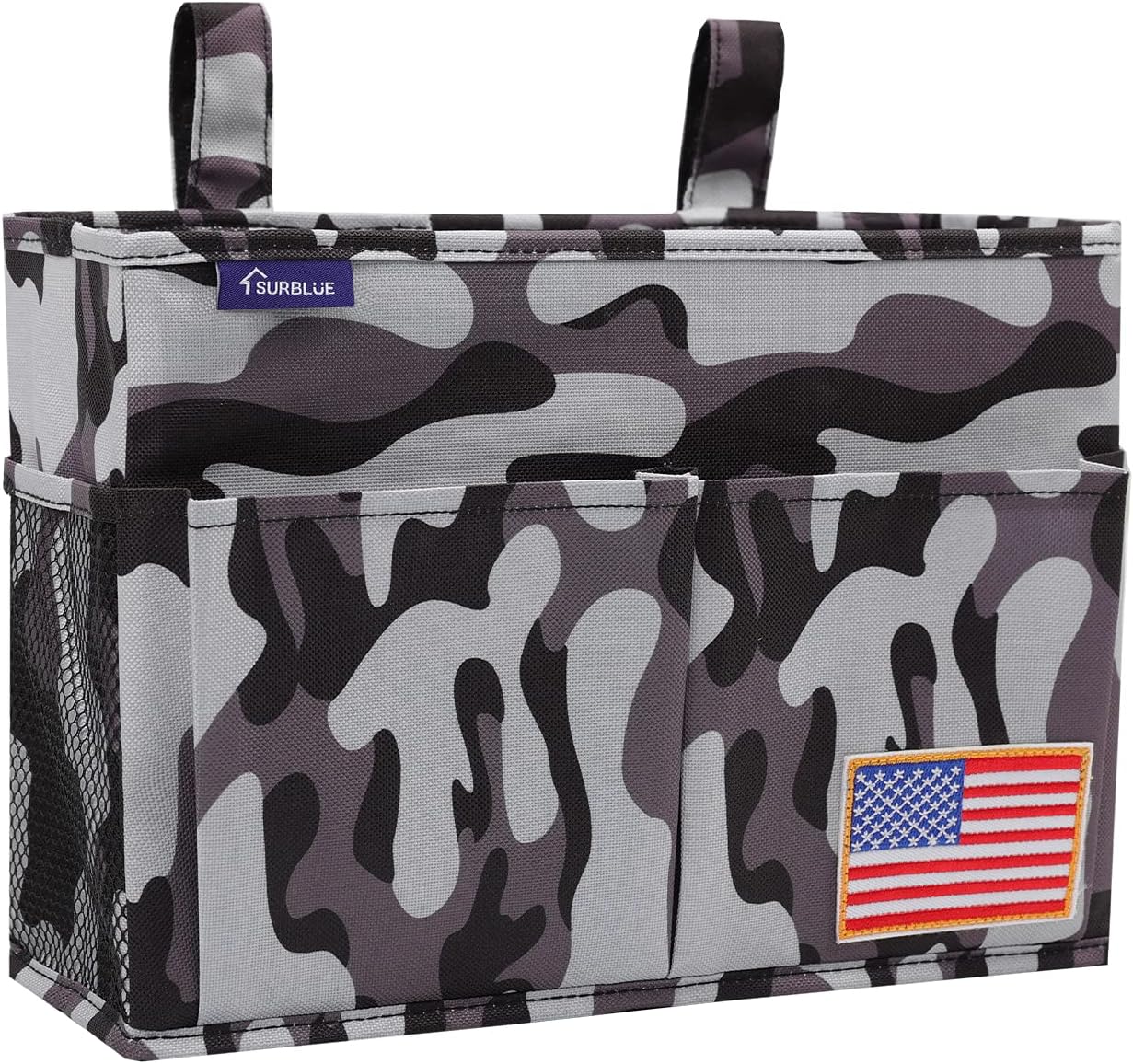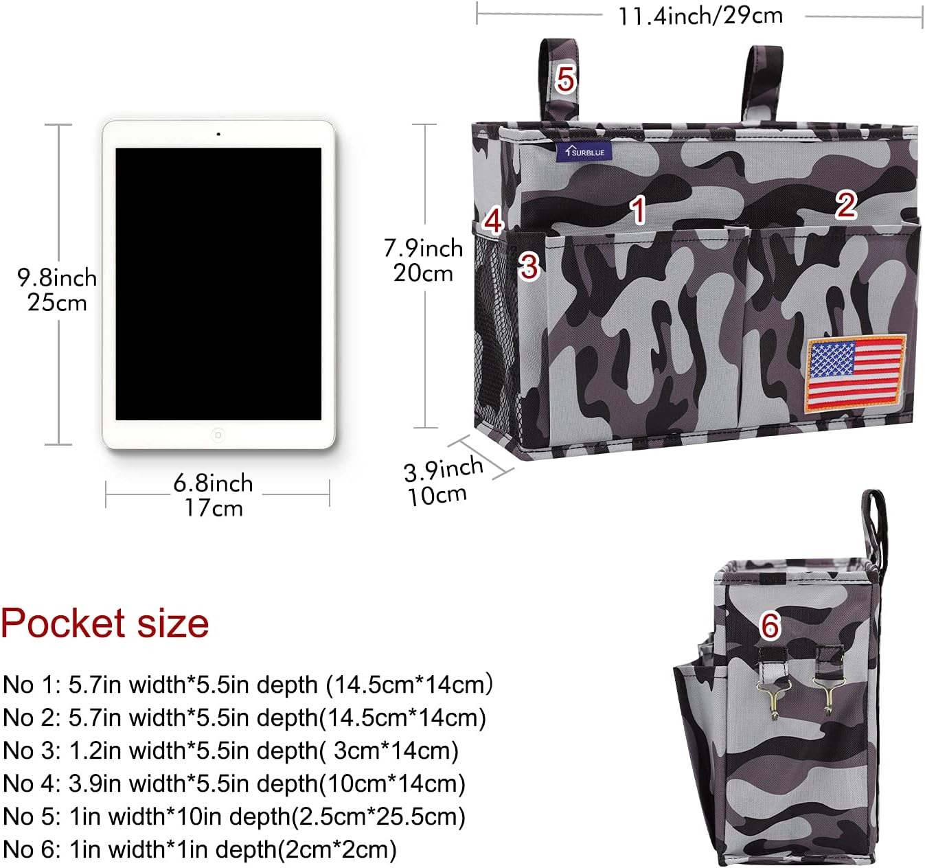 Surblue Bedside Caddy Hanging Bed Organizer Storage Bag Pocket for Bunk and Hospital Beds, College Dorm Rooms Baby Bed Rails, Wheelchair Side Bag, Camp Chiars, 4 Pockets and 2 Hooks (Small City)