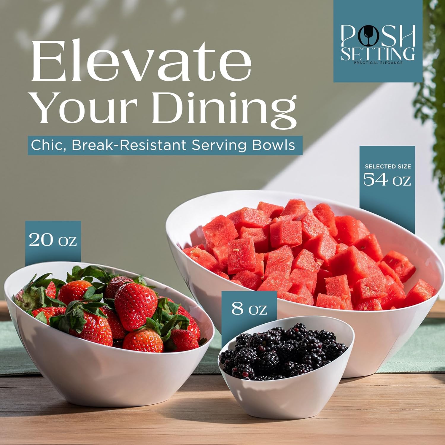 Posh Setting - White Plastic Serving Bowls for Party - Angled, Disposable, Chip & Candy Bowls - 54 OZ, 5 Pack