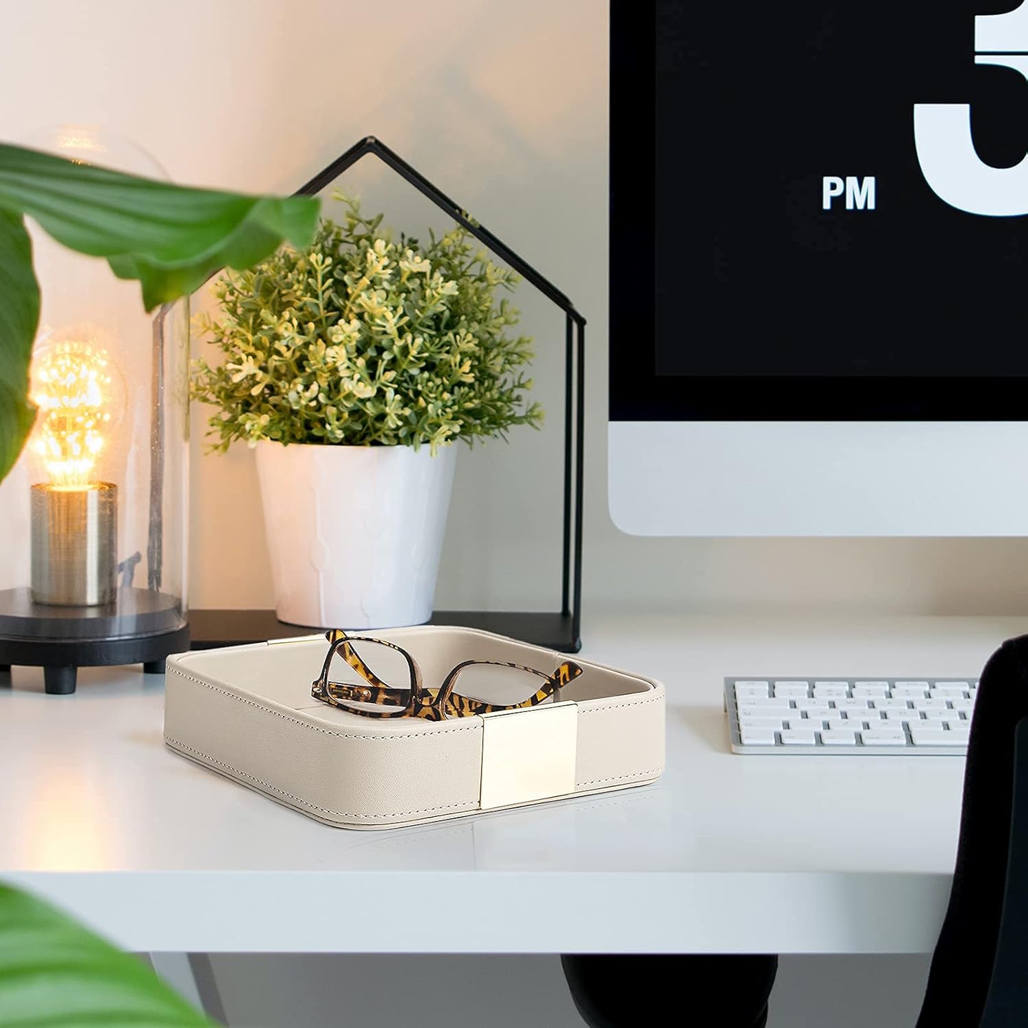 - 【Widely Used】This leather tray with metal is suitable for use in a variety of settings, from homes to offices. It can be used to store keys and other small items in an entryway or to keep jewelry organized on a dresser.