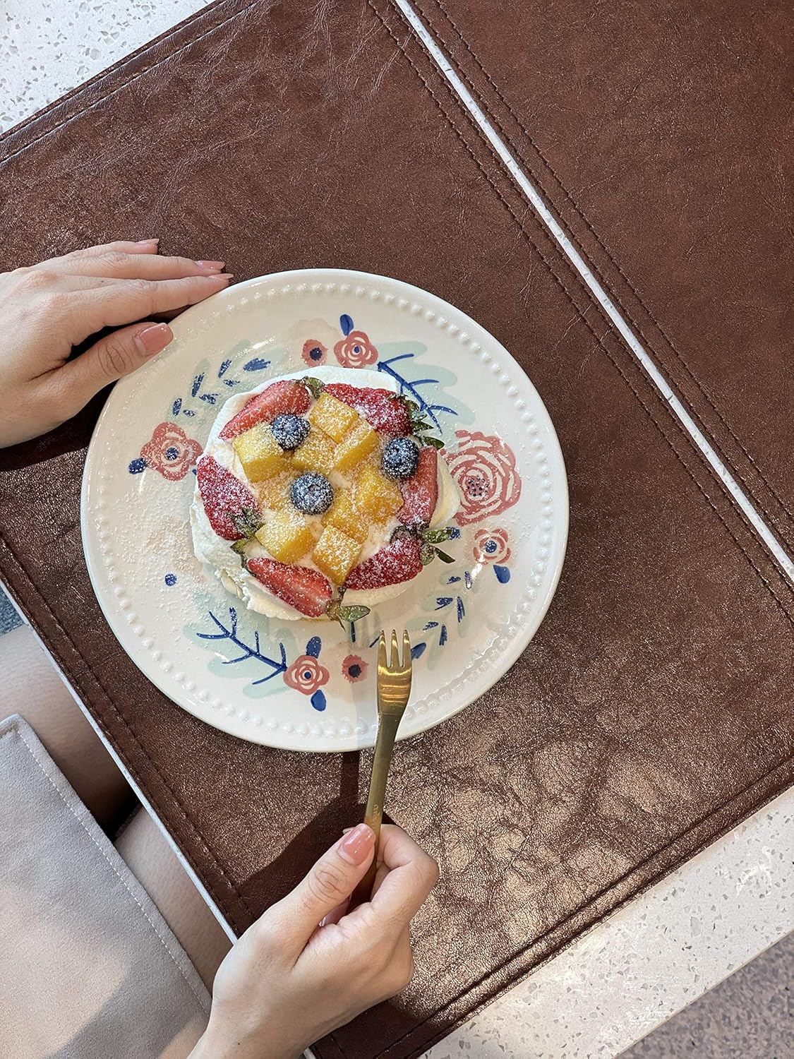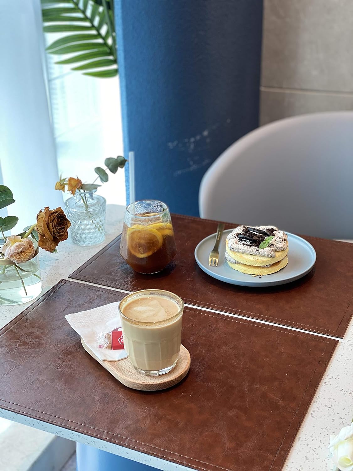 Waterproof PU Placemats, Faux Leather Dining Table Mat, Set of 6, Easy to Wipe Off Scrub Vinyl Mat, Heat & Stain Resistant for Office Conference Table, Home Decor