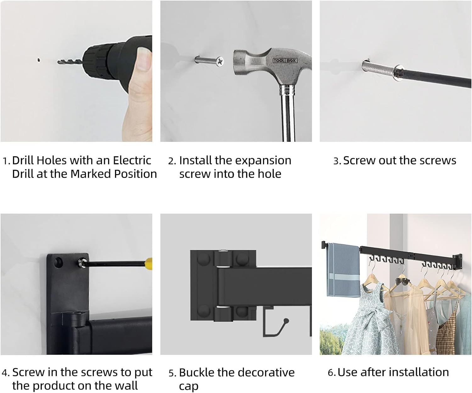 - β Punch-free & Drilling Installation to Choose -- Whether you prefer a punch-free installation (With No-Drill Adhesive: Clothing Weightβ©½60 LBS) or traditional drilling, our clothes drying rack wall mounted offers simple installation methods suitable for various surfaces, including smooth ceramic tiles, ensuring it fits perfectly in your space. (Tips: Please make sure the wall or wood board is solid before installation.)