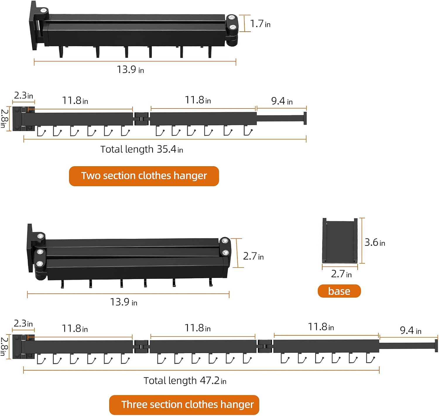 - β Classic 2-Fold Clothes Drying Rack -- Black, Folded length: 13.9" & Extended Length: 34.5". Perfect for small laundry room organizer.***Warm Tips: sheetrock wall is not recommended.