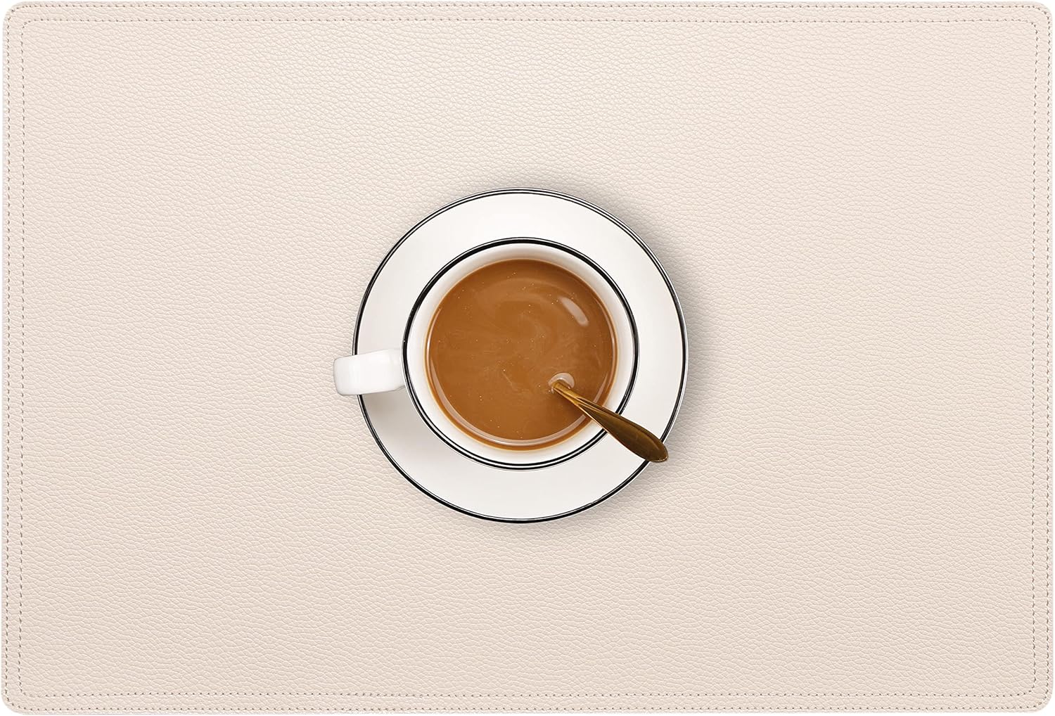 Set of 6 Faux Leather Placemats, PU Table Mats, Waterproof, Stain Resistant, Heat Resistant, Non-Slip Easy to Clean for Kitchen Dining Table,Conference Table, Beige