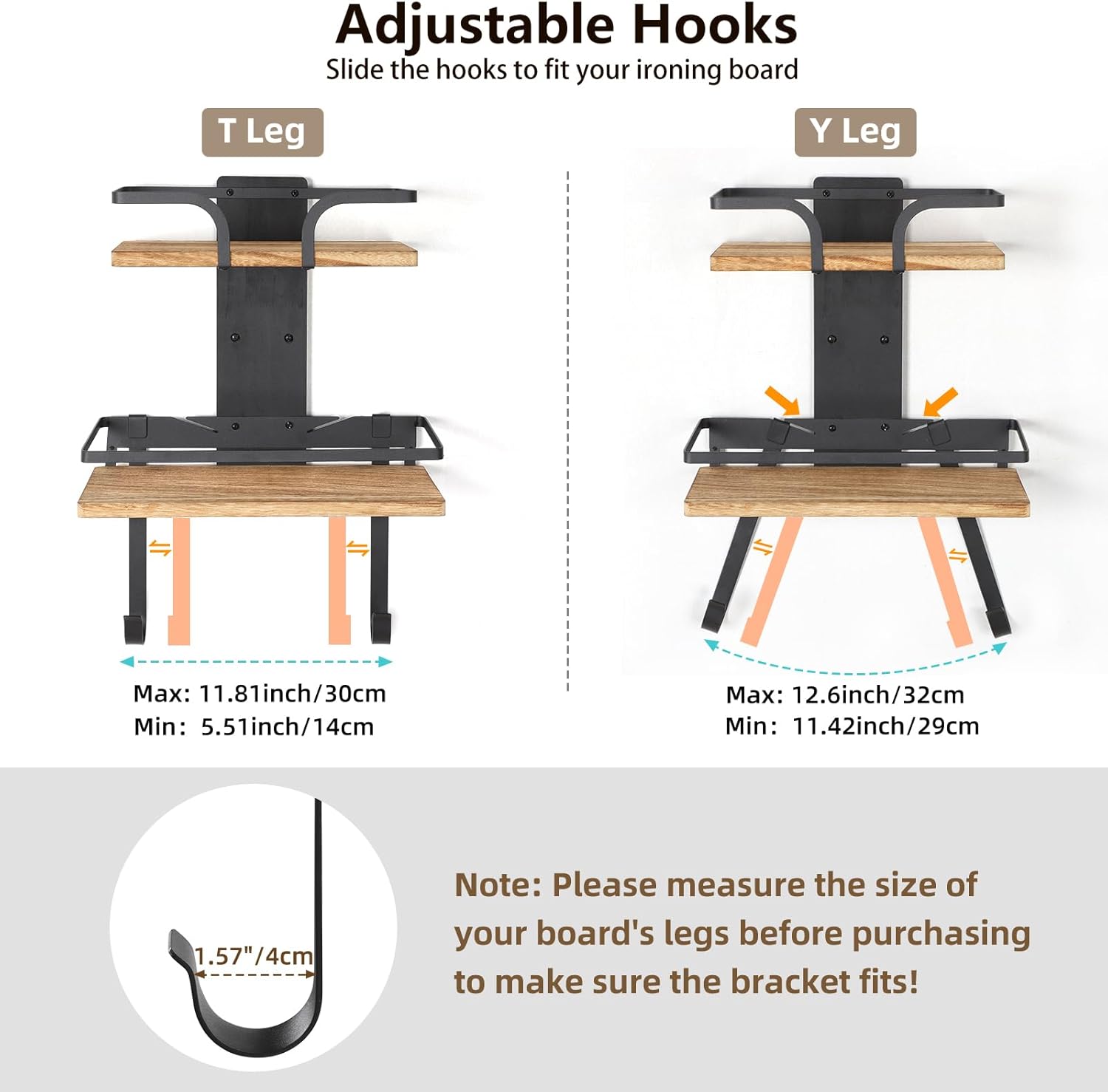 - 【2-Layer Larger Storage】Upgraded 2-layer solid wood design, this ironing board hanger for wall offers twice as much storage space as any other products. It is convenient for you to keep your irons, ironing board and ironing accessories in one location.