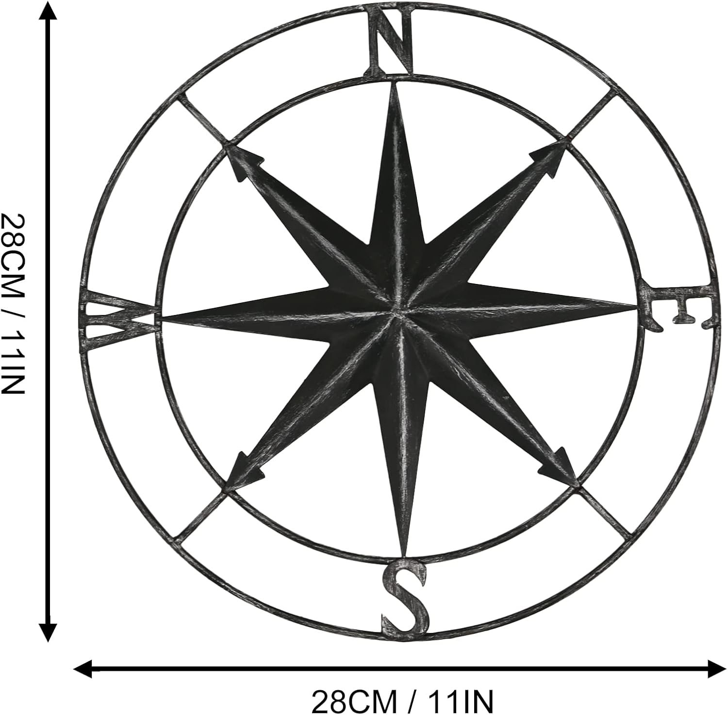 aboxoo Round Metal Compass Decorative Compass Metal Wall Art Hanging Wall Sculpture 11 Inch Black Diameter Farmhouse Decor Indoor or Outdoor Sign