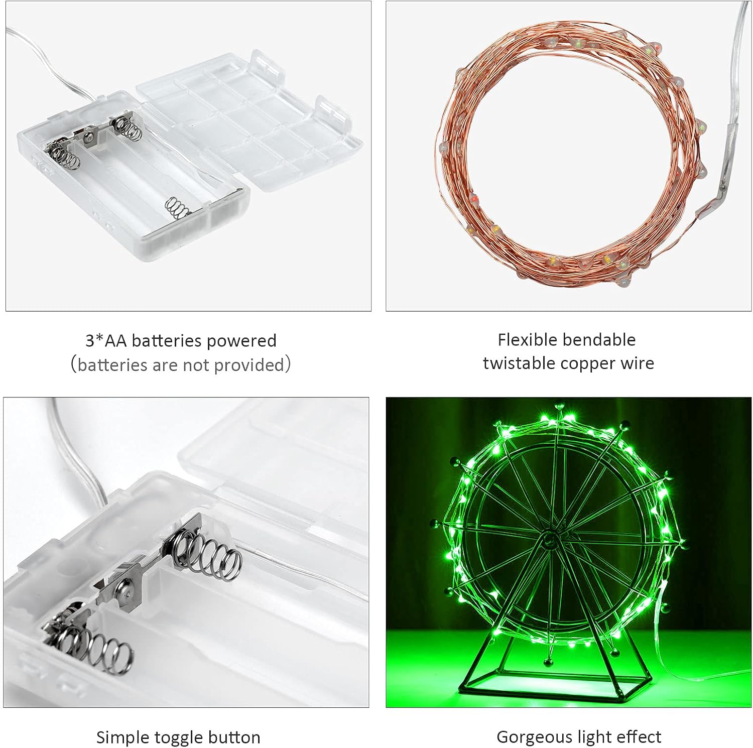Mini St. Patrick's Day Fairy Lights Battery Operate, 4 Pack Copper Wire 3*AAA Battery Powered Led Starry Fairy String Lights for Bedroom, Christmas, Party, Wedding, Decoration(5m/16ft Green)