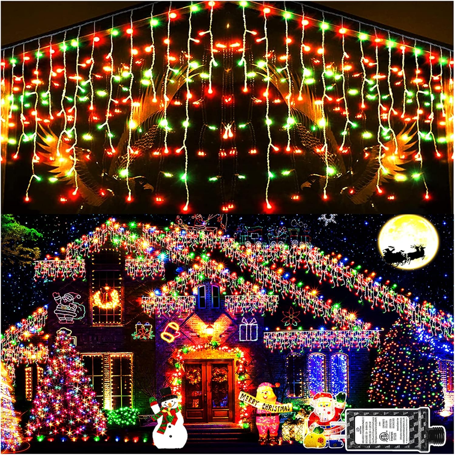 KNONEW Christmas Lights Outdoor Decorations 400 LED 33ft 8 Modes Curtain Fairy String Light with 75 Drops, Clear Wire LED String Light Indoor Decor for Wedding Party Christmas (Red and Green)