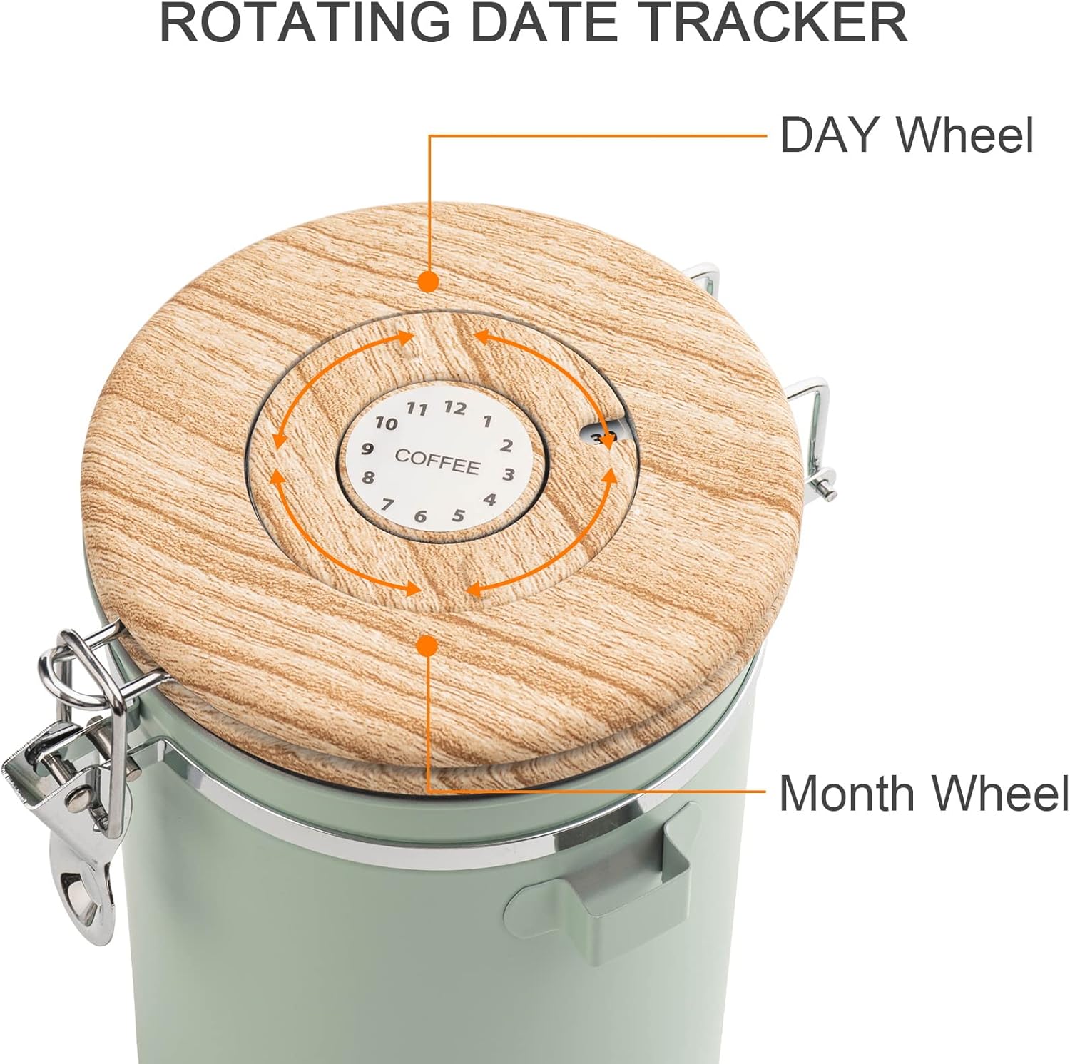 TEDSWAIT Coffee Canisters Airtight Coffee Bean Storage Container Kitchen Stainless Steel Food Storage Container with Scoop Date Tracker & CO2 Valve 61Fl Oz (Green)