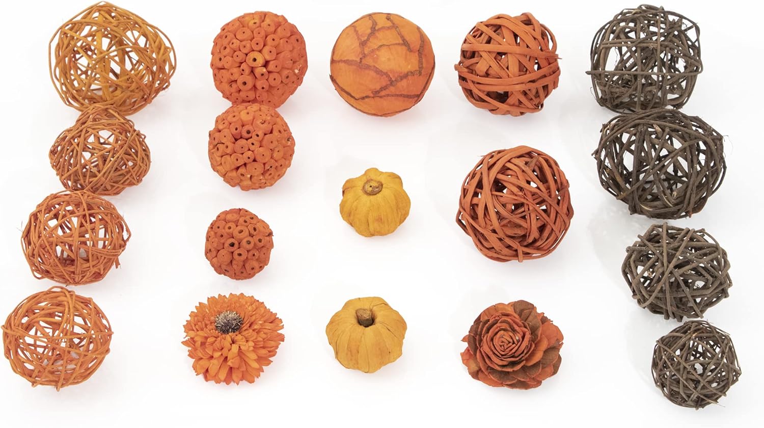 ANDALUCA Orange Decorative Vase Filler Bag with Mini Pumpkins, Orbs, Balls & Flowers Bowl Filler Decor (Pumpkin Orange)