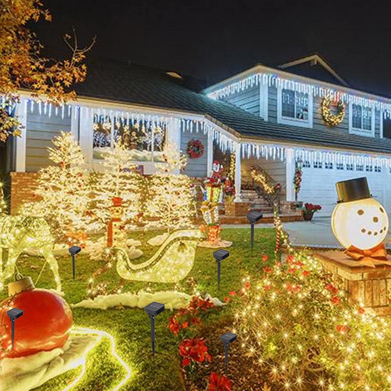 - 2 Pack Christmas Solar String Lights: Dazzle Bright solar lights comes with 120 LED bulbs. Bright Christmas lights exude a 360 degrees charming warm white light, add a soft and warm festival glow to your home. The solar christmas lights is 39.4 ft, lead wire is 6.5 ft, bulb spacing is 3.94 inch. Total length is 45.9 ft.