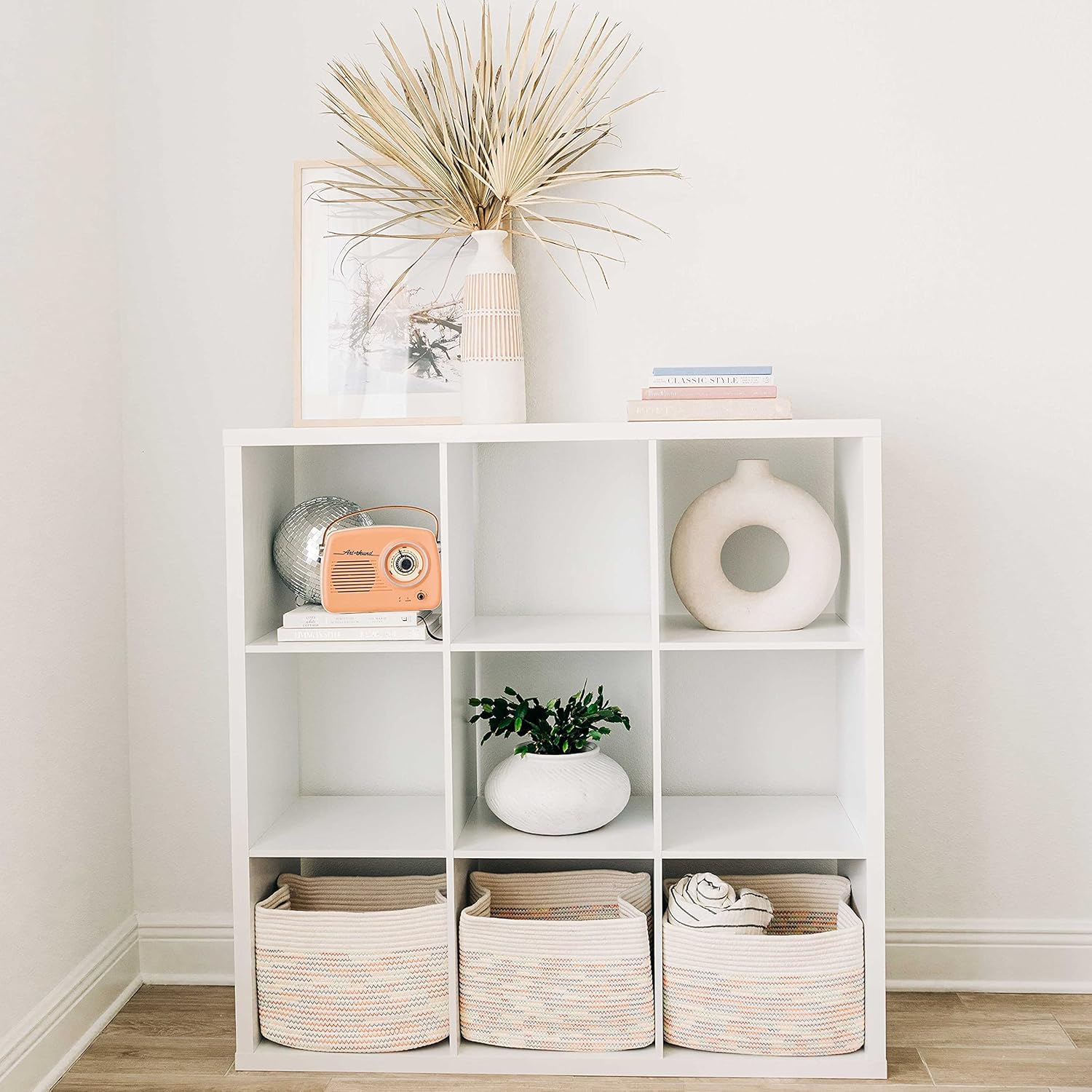 - Elegant Cotton Coiled Rope Cubes Design – A vintage feel with a modern touch these coiled rope baskets are made from tightly-woven cotton that’s strong, durable, and fray resistant for long-lasting indoor storage, display, or organization.