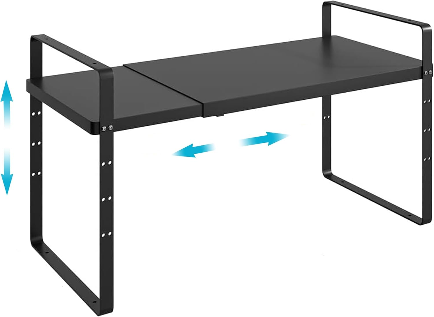 iPEGTOP Expandable Cabinet Storage Shelf Organizer Rack, Heavy Duty Cupboard Stand Spice Rack Adjustable Height Pantry Garage Shelf Space Riser for Counter Kitchen Organization, Black, 1 Pack
