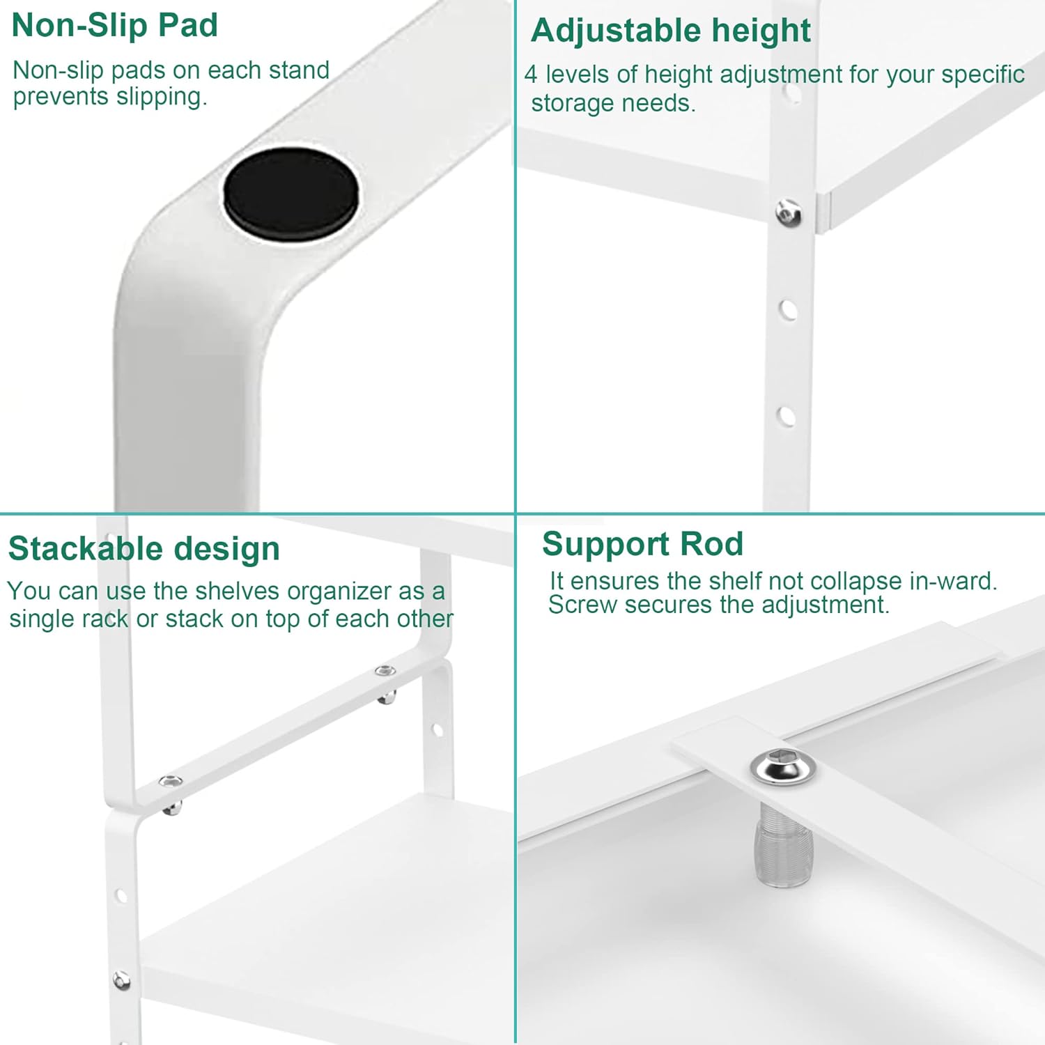 - 【Multifunctional storage】--This shelf will double your space! It can be used in various places in your home, including kitchen cabinets, desks, pantry, bathroom cabinets, closets, countertops, under the sink or any place that needs extra space to maximize storage and organization.
