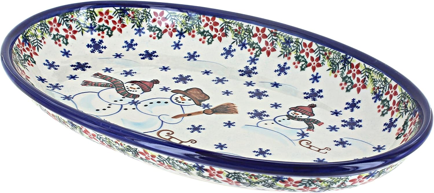 Blue Rose Polish Pottery Snowflake Friends Oval Platter
