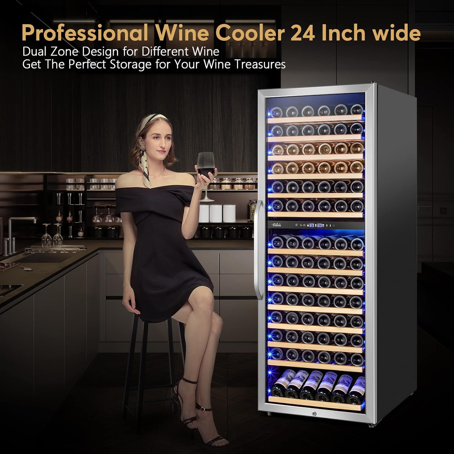 - 【179 Bottles Large Capacity for Different Wine】The 24'' wine cooler has spacious storage for the red wine collections which can store up to 179 bottles of standard Bordeaux (750 ml) wine. Meanwhile, high quality iron shelves are less likely to scratch your wine labels. Perfect for wine bottles and no worry of damage to the wine label.