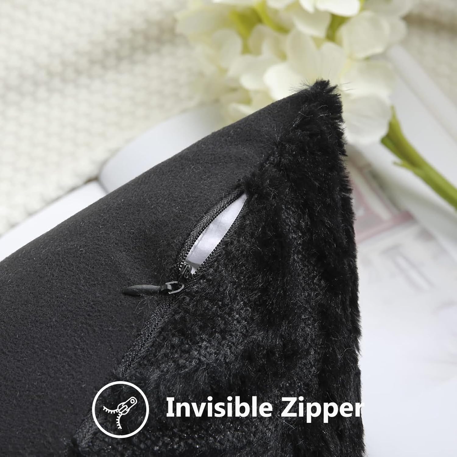 decorUhome Fall Throw Pillow Covers 22x22 Inch Set of 2, Soft Plush Decorative Faux Fur Black Solid Couch Pillow Covers, Accent Farmhouse Neutral Square Euro Pillow Cases for Sofa Bed Living Room
