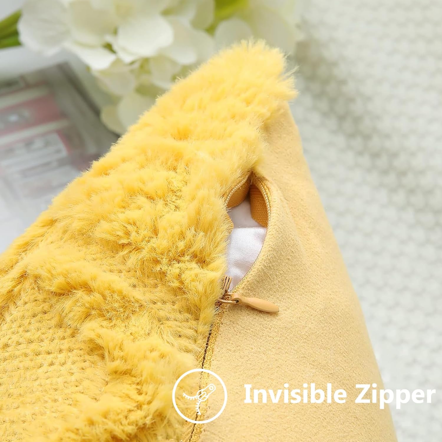 decorUhome Throw Pillow Covers 12x20 Inch Set of 2, Soft Plush Decorative Faux Fur Mustard Yellow Solid Couch Pillow Covers, Accent Farmhouse Neutral Lumbar Euro Pillow Cases for Sofa Bed Living Room