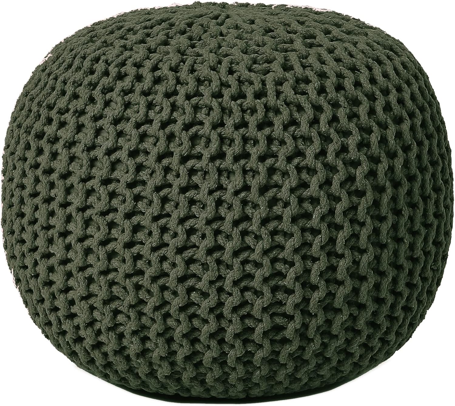 REDEARTH Round Hand Knitted Pouf - Foot Stool Bean Bag Ottoman - Cord Boho Pouffe - Poof Accent Beanbag Footrest for Living Room - Bedroom - Patio - Lounge (19.5"x19.5"x14") - Olive