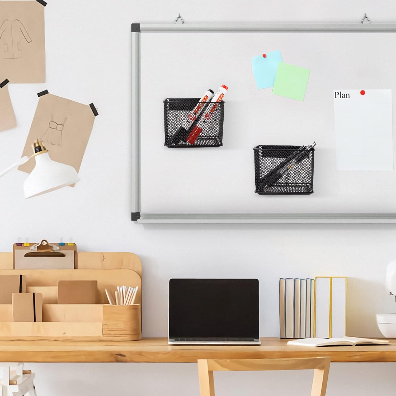 - Save Space: The size of the magnet basket for whiteboard is 4.5'' × 2.2'' × 3.5'', not occupying too much space. It can well organize pens, pencils, markers, keys, notes, keeping your locker and desk tidy