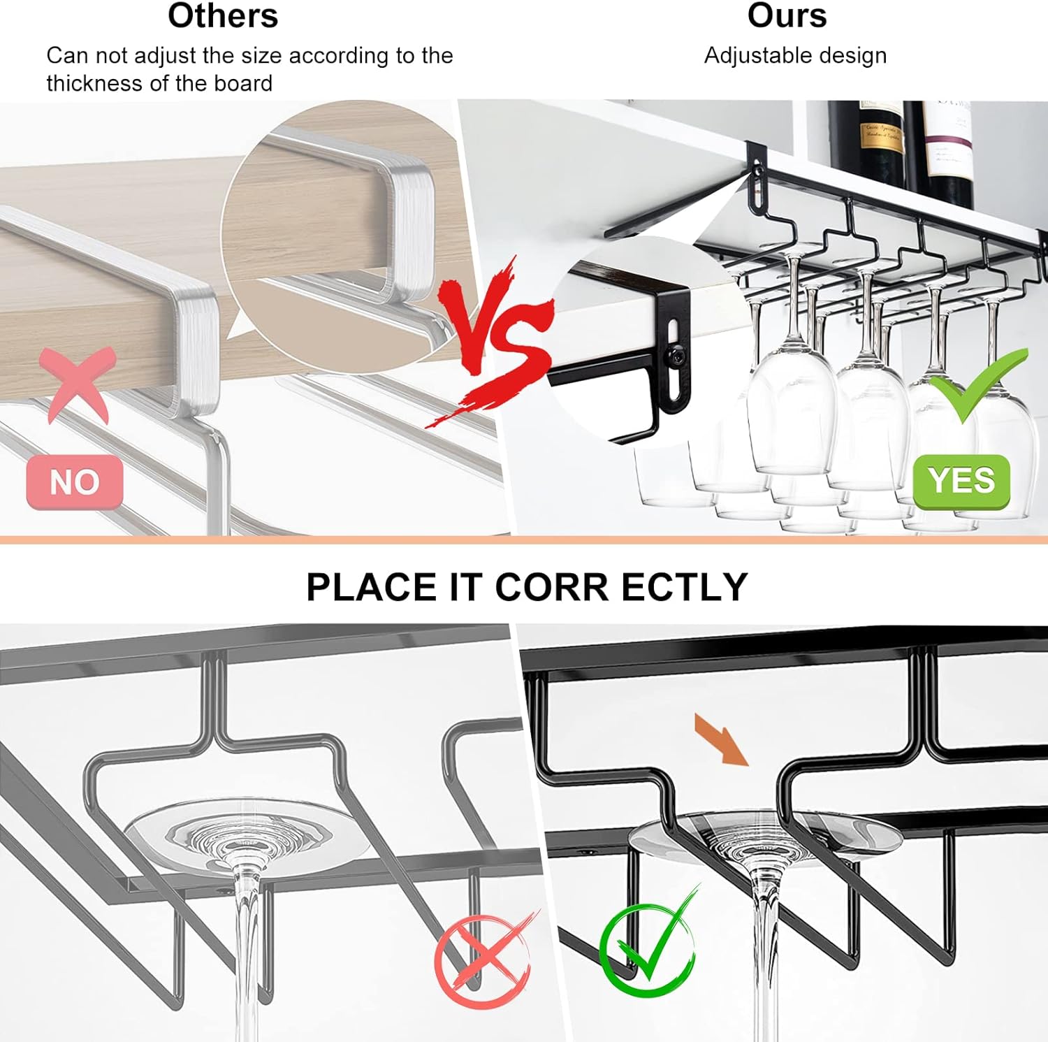 - 【Space Saving】Compact wine glass rack can be hang under any kitchen cabinets, save so space while displaying your glasses! Adds elegance taste to your home or bar's decor, as well as a best gift for wine lovers.
