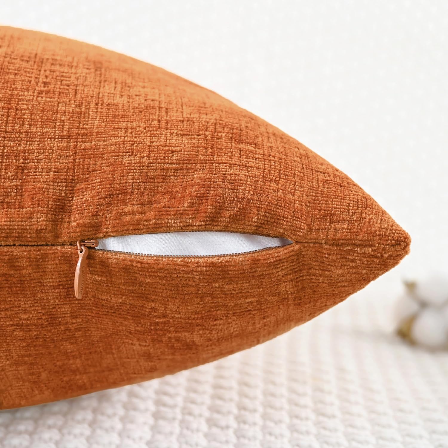 CaliTime Fall Throw Pillow Covers Decorative 26 X 26 Inches Pack of 2 Cozy Chenille Cushion Cases for Couch Sofa Bed Living Room Home Burnt Orange
