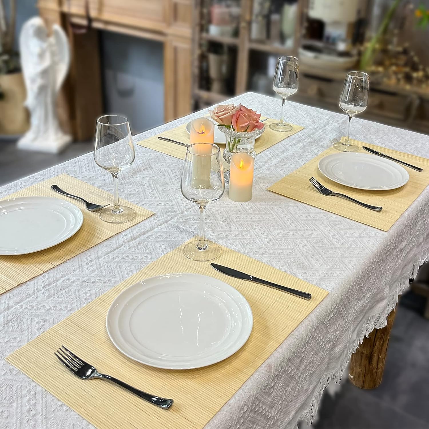 - 【SIZE & MATERIAL】:Each table mat is 17.7"X11.8"(45cmX30cm),Set of 12,made from 100% natural bamboo, smooth polishing, environemtally friendly, washable, reusable.Placemats are constructed with round sticks of bamboo. These are similar in construction to sushi rolling mats, and may be used as such.