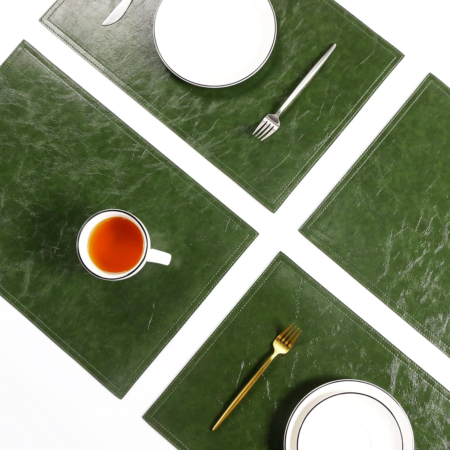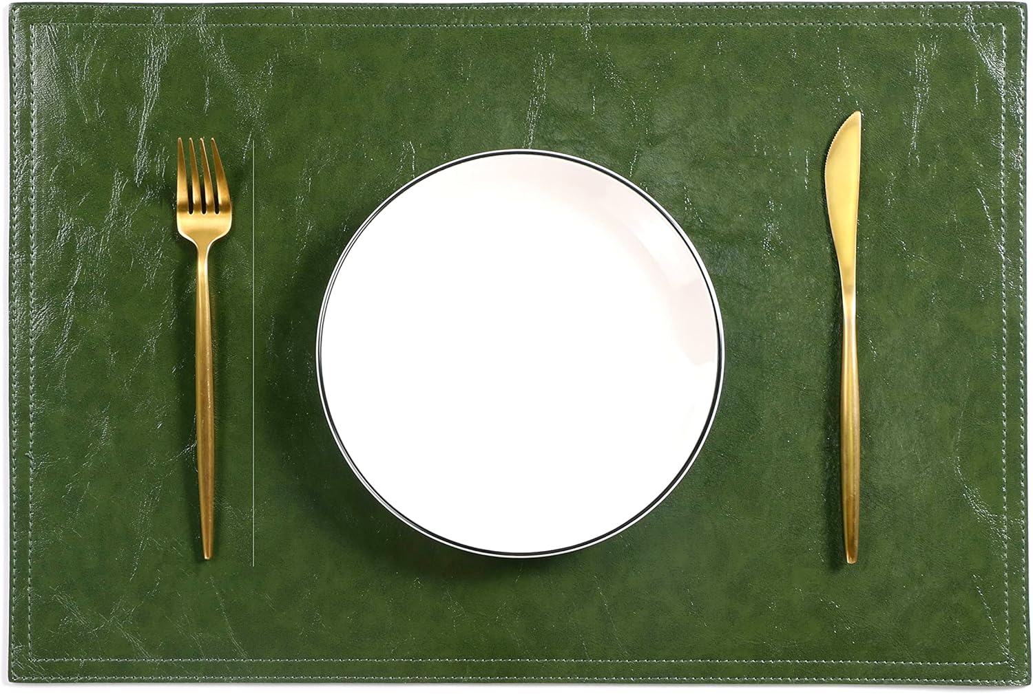 Waterproof PU Placemats, Faux Leather Dining Table Mat, Set of 6, Easy to Wipe Off Scrub Vinyl Mat, Heat & Stain Resistant for Office Conference Table, Home Decor