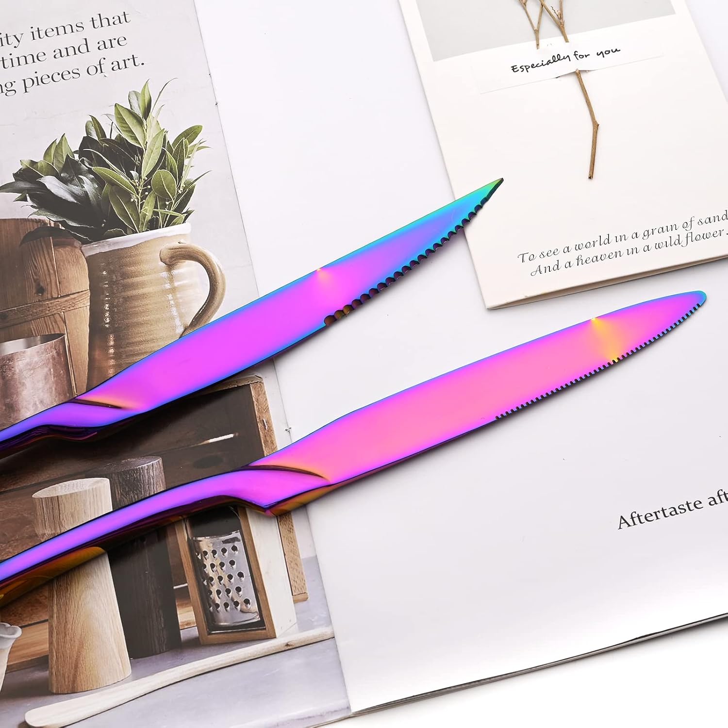 24-Piece Rainbow Flatware, Mirror 18/10 Stainless Steel Modern & Luxury Dinnerware Set With Serrated Steak Knife Teaspoon For Daily Use or Dinner Party Restaurant - Service For 4
