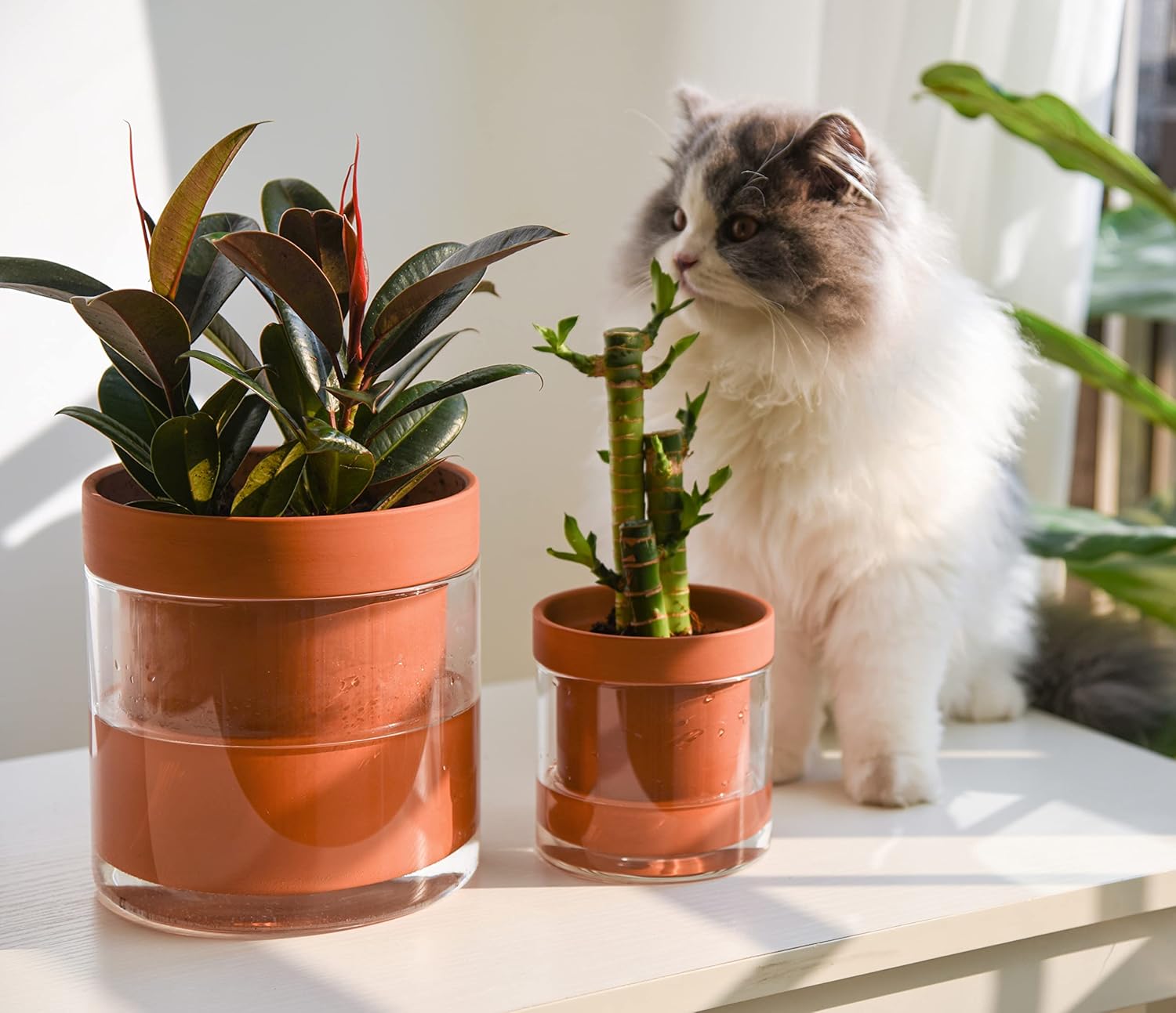 Phoenix Vine 4 Inch 6 Inch Self Watering Planter Pots, Terracotta Clay Pots with Glass Reservoir for Indoor Plants, Herbs, Flowers, 52-A-G-46