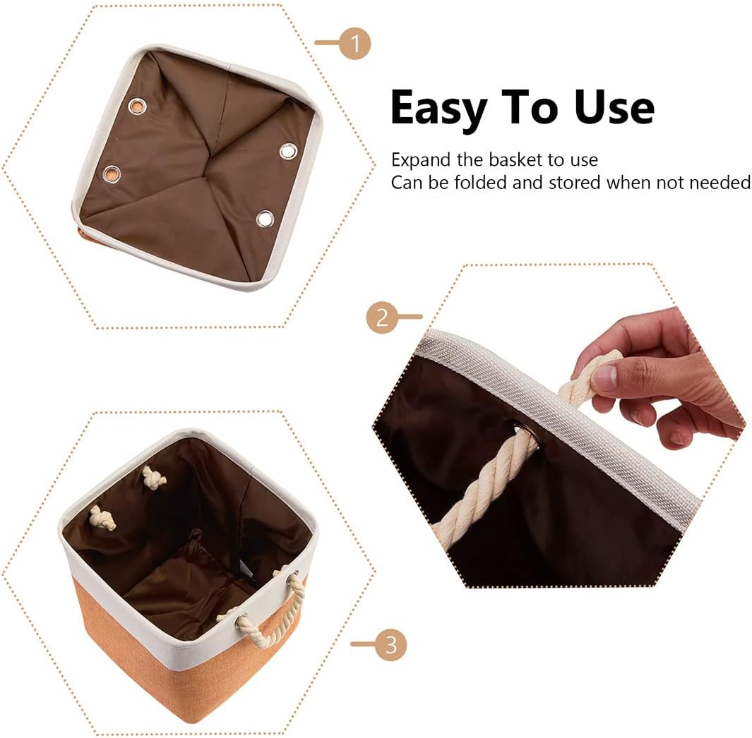 i BKGOO 3Pack Large Foldable Storage Bins,Collapsible Sturdy Cationic Fabric Organizing Storage Basket Cube with Cotton Handles for Home Office Shelf Clothes Toys Beige-Orange 13×13×13 inch