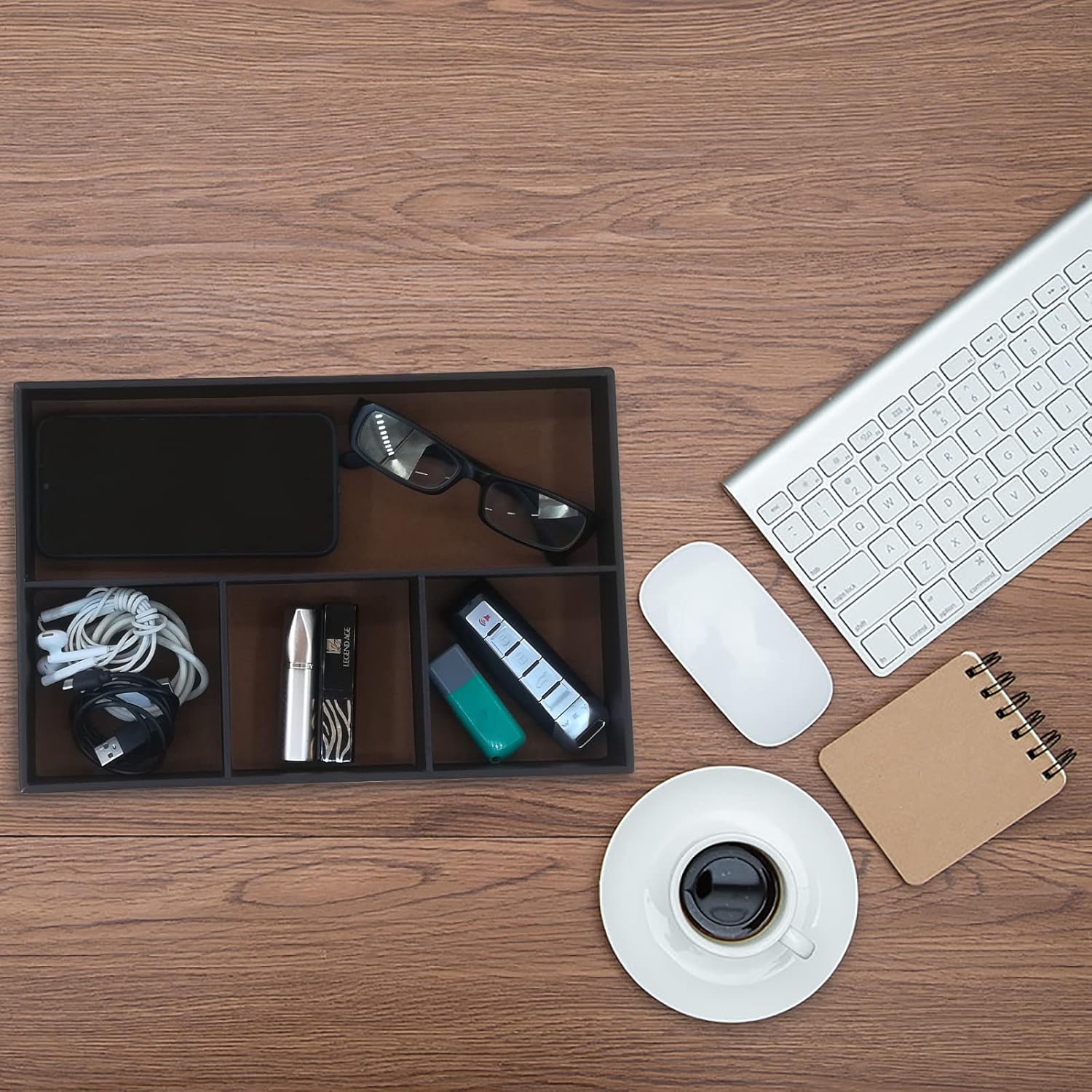- [Perfect design] 4 compartments, better classification and protection of accessories. The right size will not take up your extra space. Therefore, you donโt need to waste a lot of time searching for misplaced items. Make your space more tidy and orderly. The perfect daily tray, suitable for your desk, bedside table, dressing table, entrance hall, side table, etc.